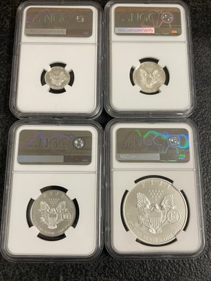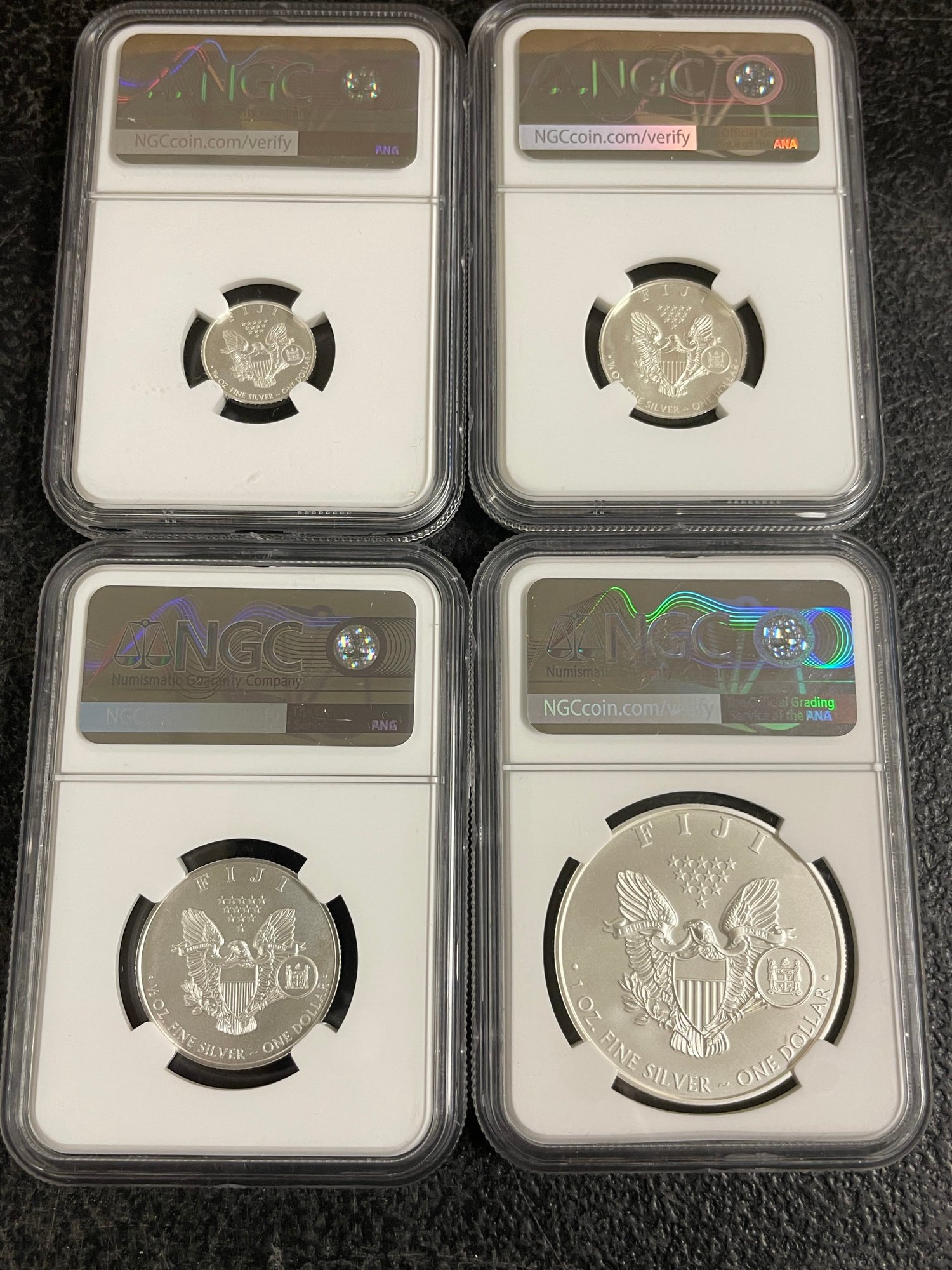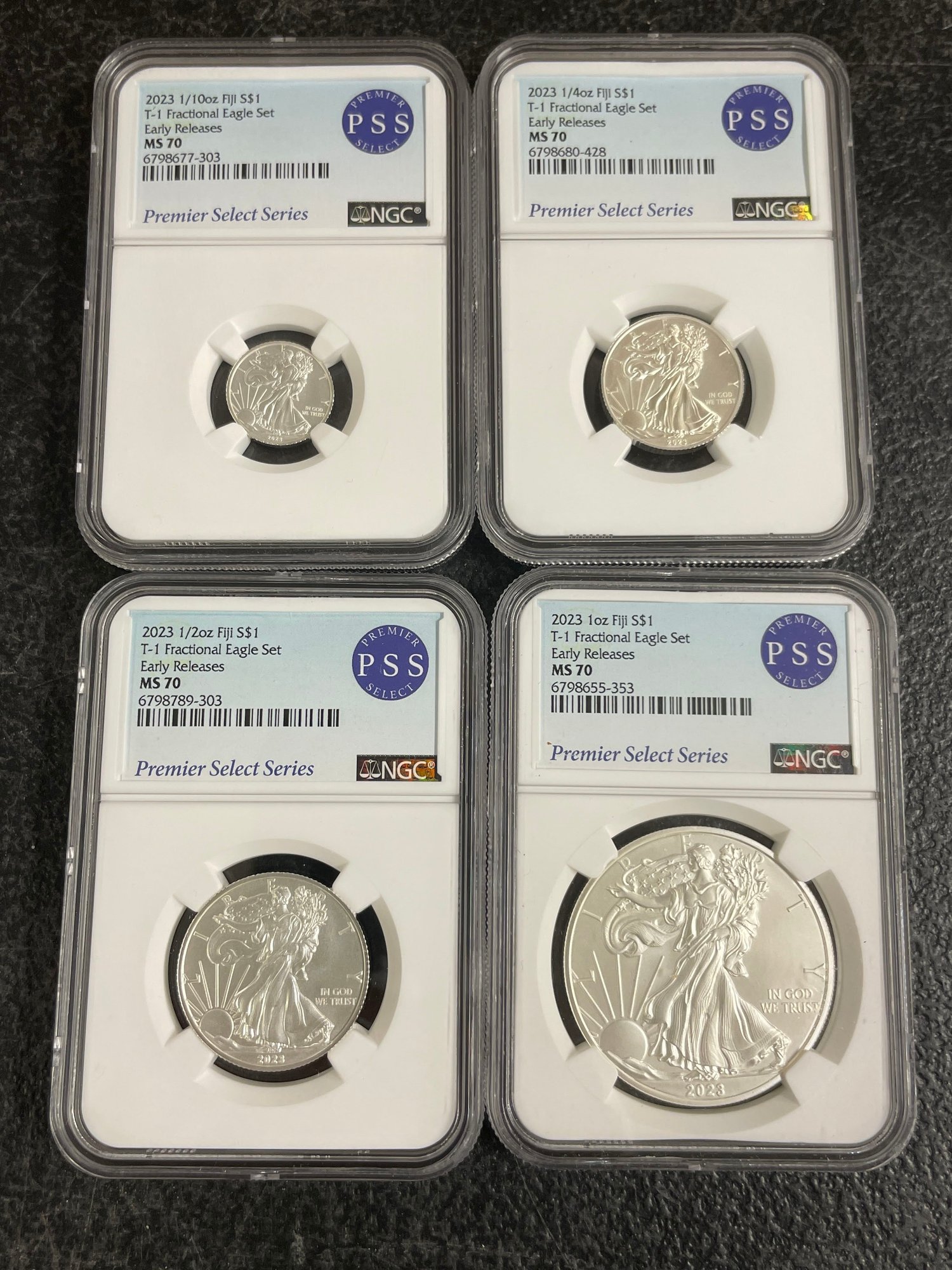 FIJI 2023 MS70 4-COIN SET T-1 FRACTIONAL EAGLE SET