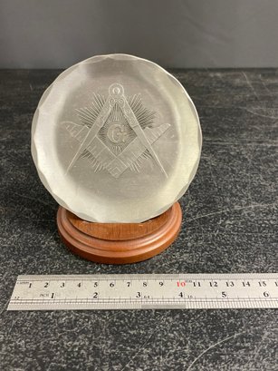 HANDMADE WENDELL AUGUST PEWTER MASONIC DISPLAY PLATE WITH STAND