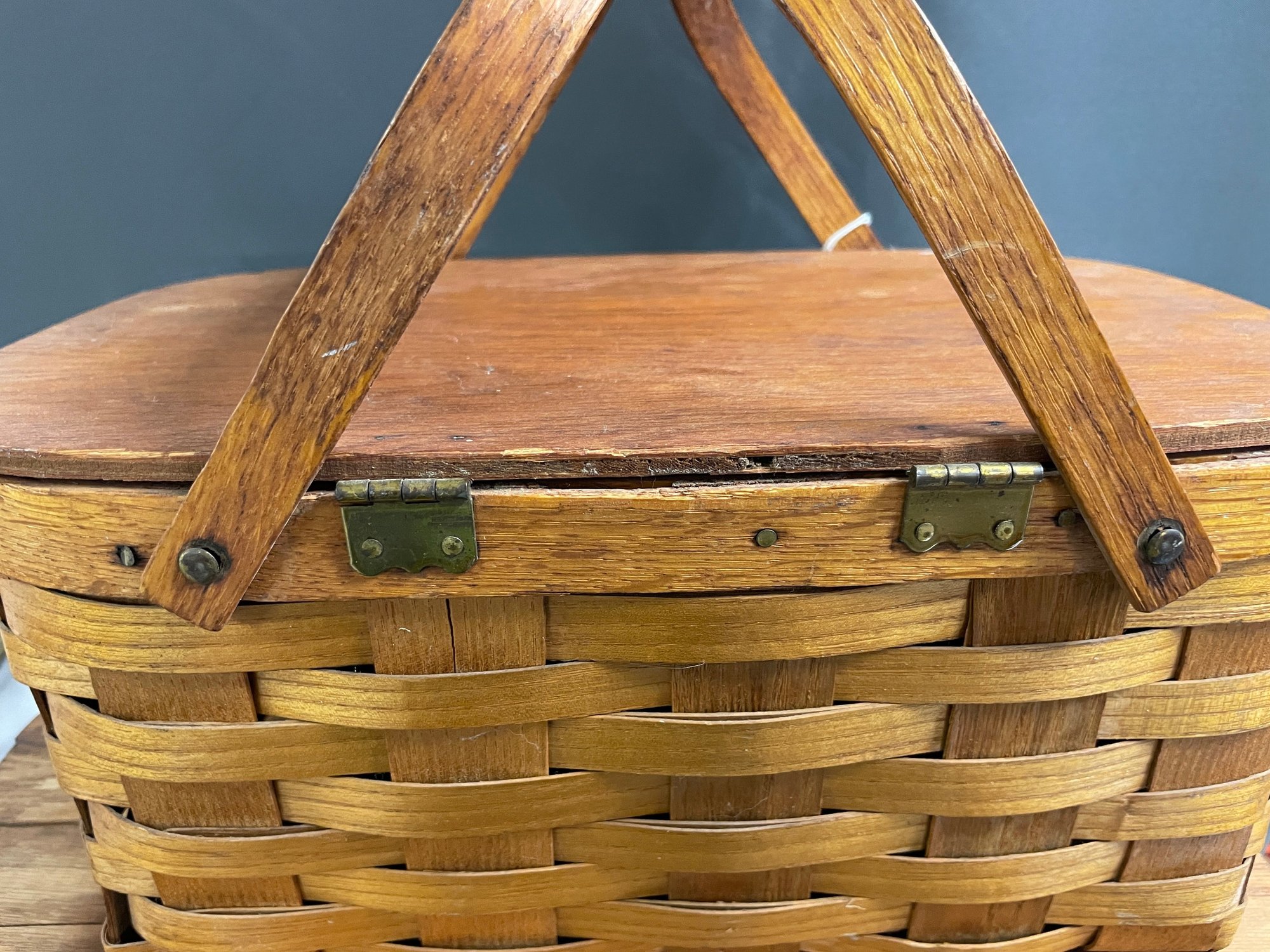 LARGE VINTAGE PICNIC BASKET - DOUBLE HANDLE