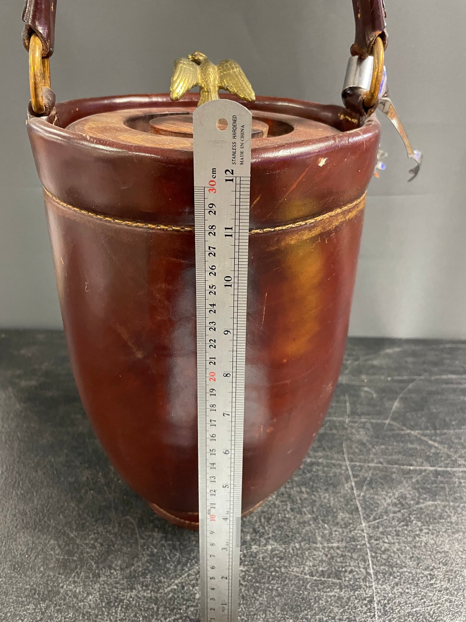 LEATHER WRAPPED ICE BUCKET W/TONGS