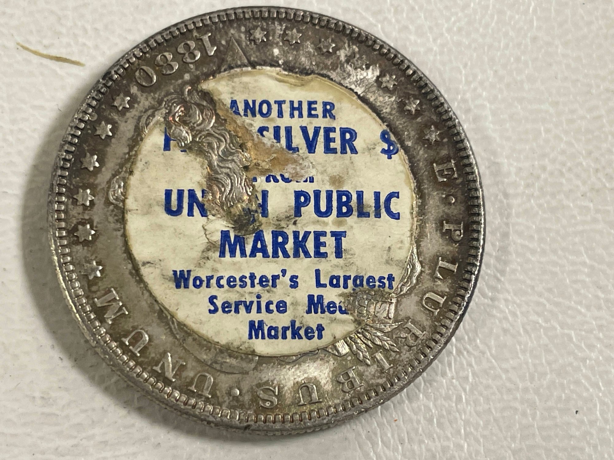 "ANOTHER PURE SILVER $ FROM UNION PUBLIC MARKET WORCESTER'S LARGEST SERVICE MEAT MARKET"