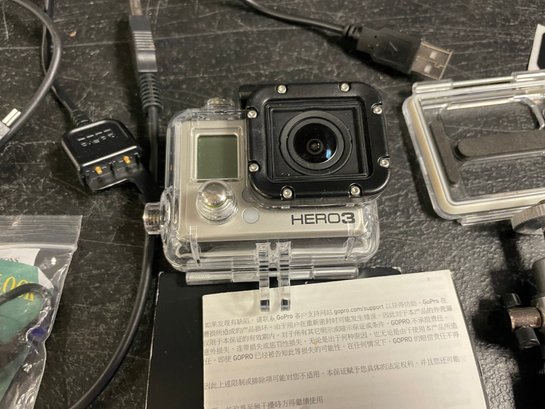 GO PRO HERO3 CAMERA WITH ACCESSORIES, MOUNTS, ETC