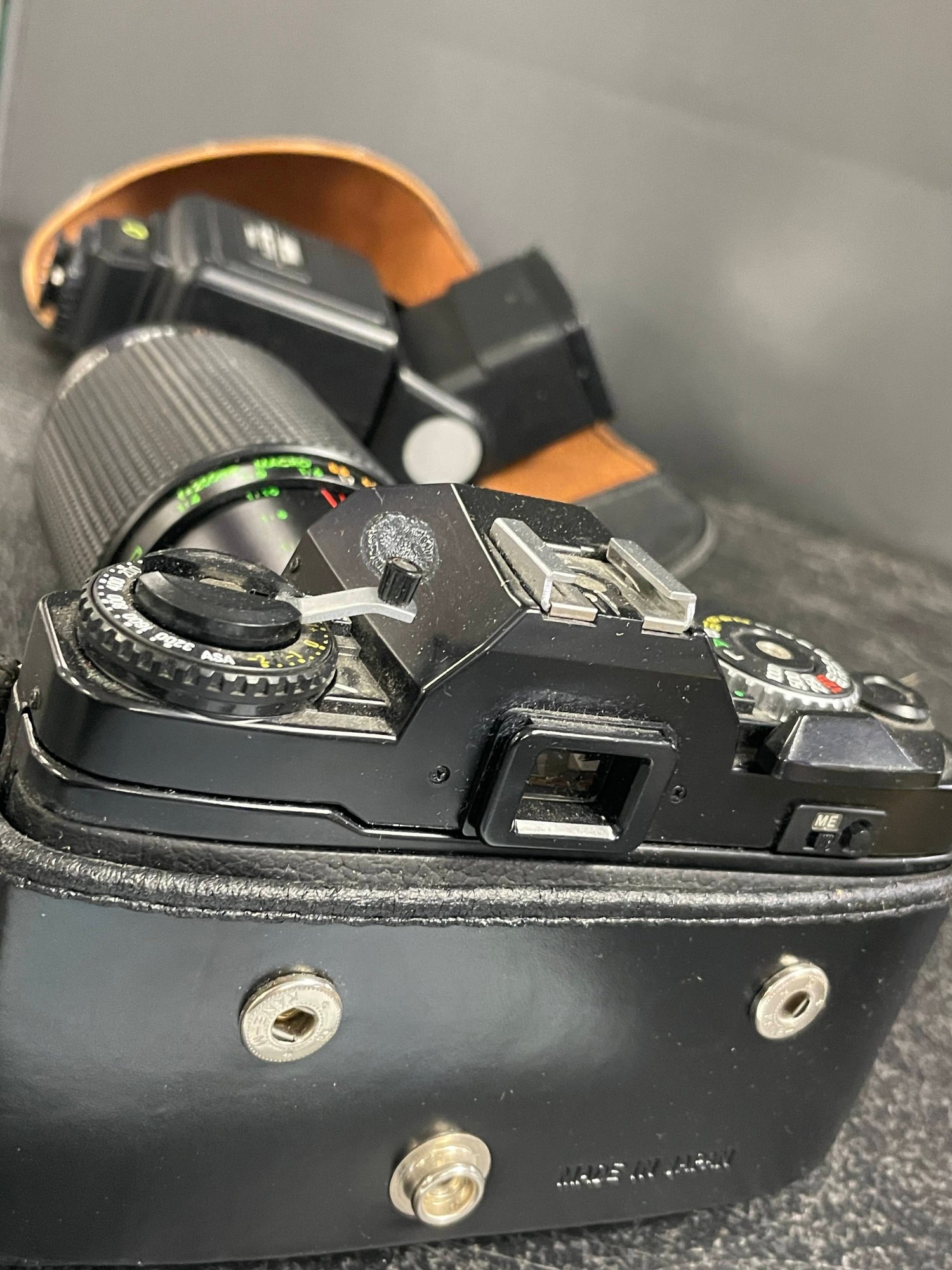 RICOH 35MM CAMERA XR-7 WITH ELECTRONIC FLASH - SUNPAK 422D