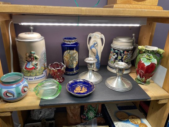 STERLING WEIGHTED CANDLE STICKS STEINS LIMOGES POTTERY PORC