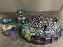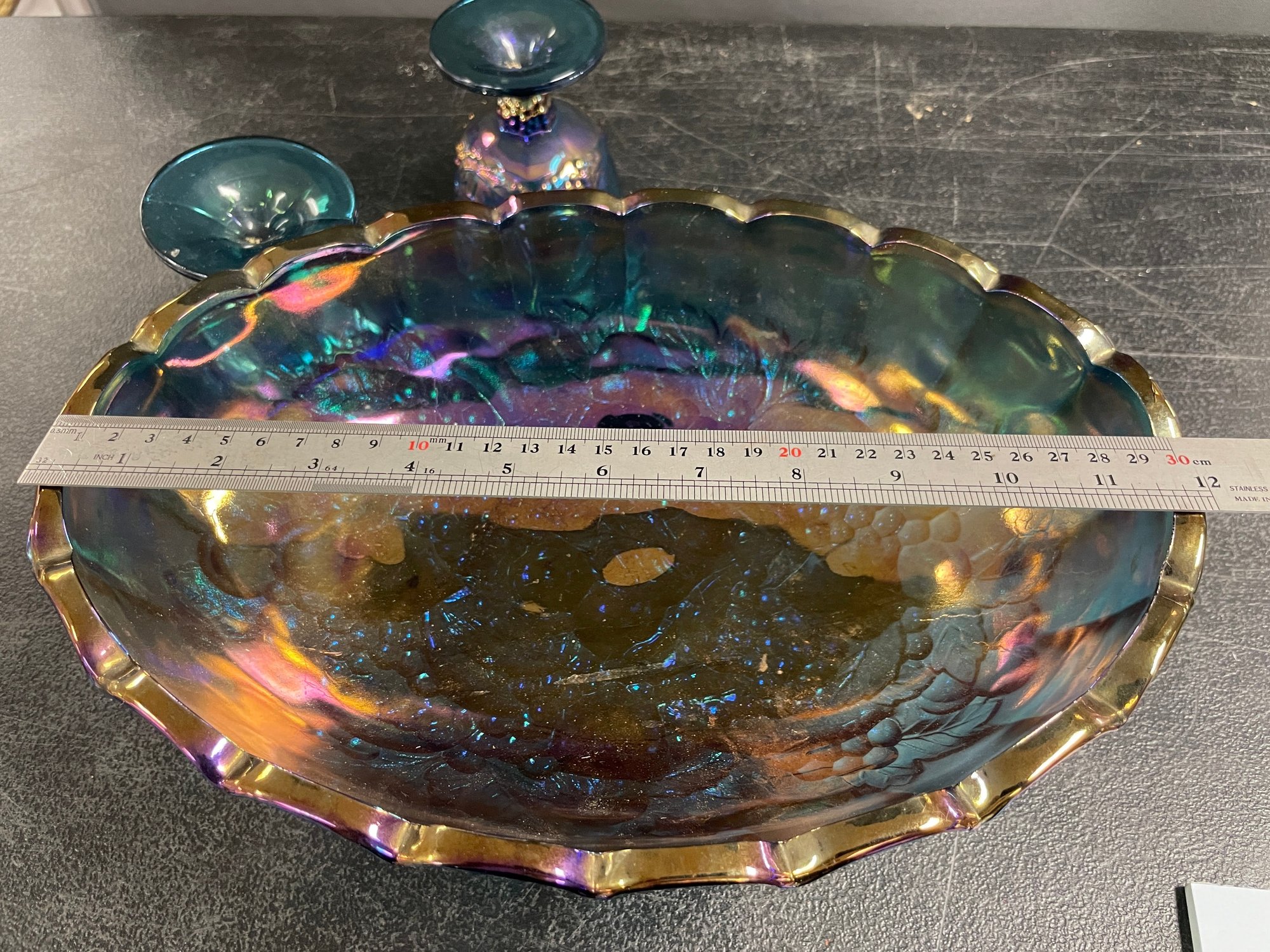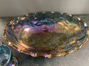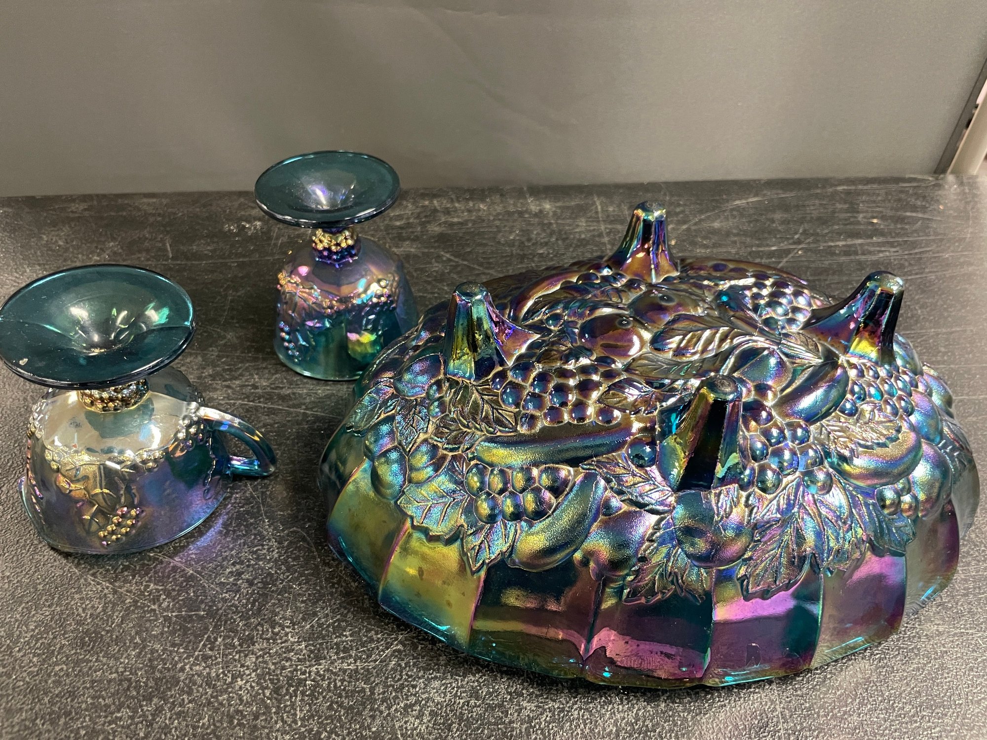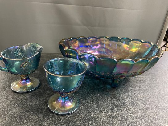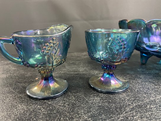 VINTAGE INDIANA BLUE CARNIVAL GLASS GRAPE FOOTED BOWL SUGAR/CREAMER