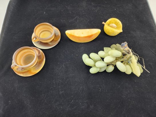 Agate(?) stone tea cups and saucers