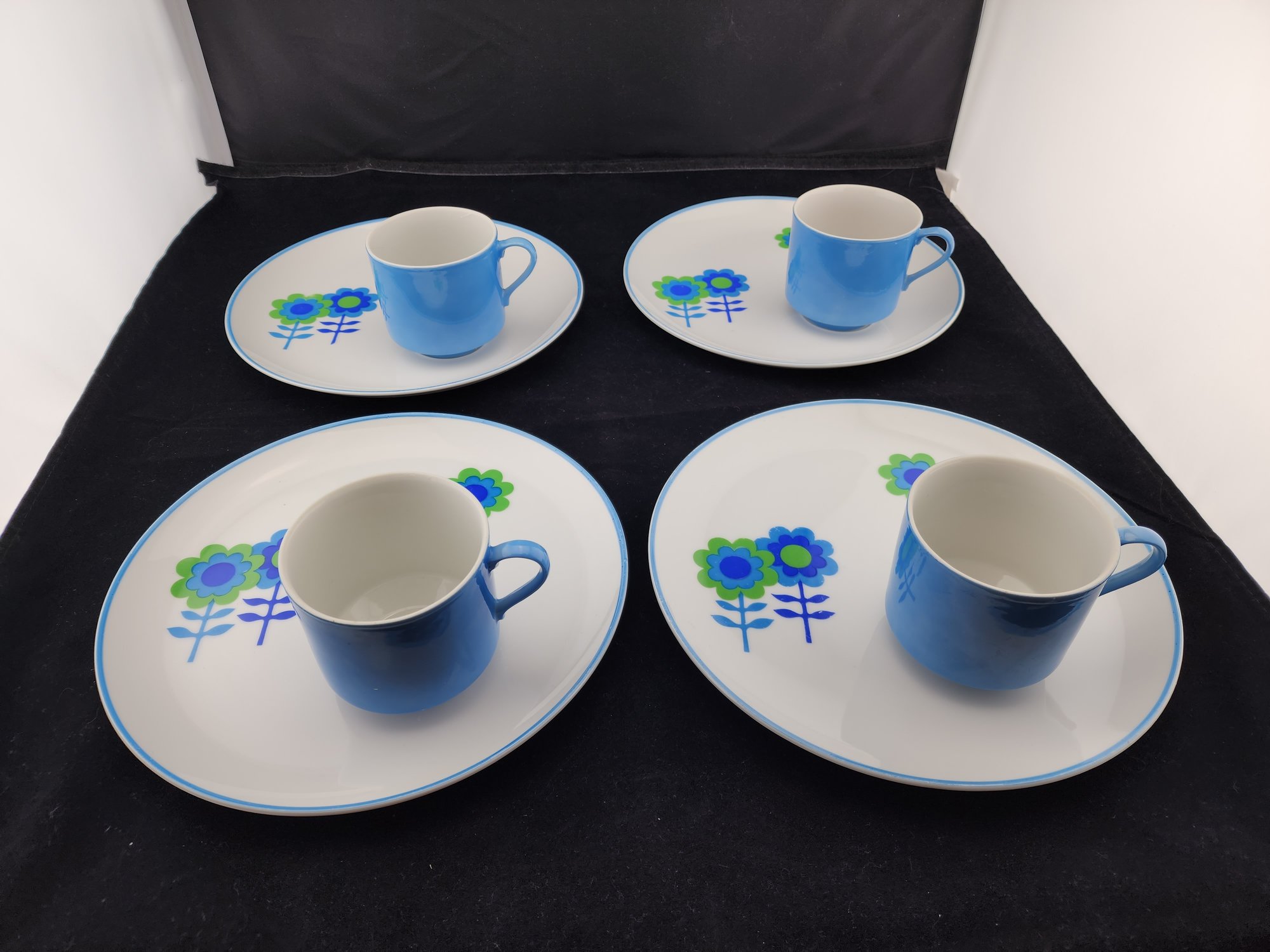 Set of 4 complete plate/mug combos
