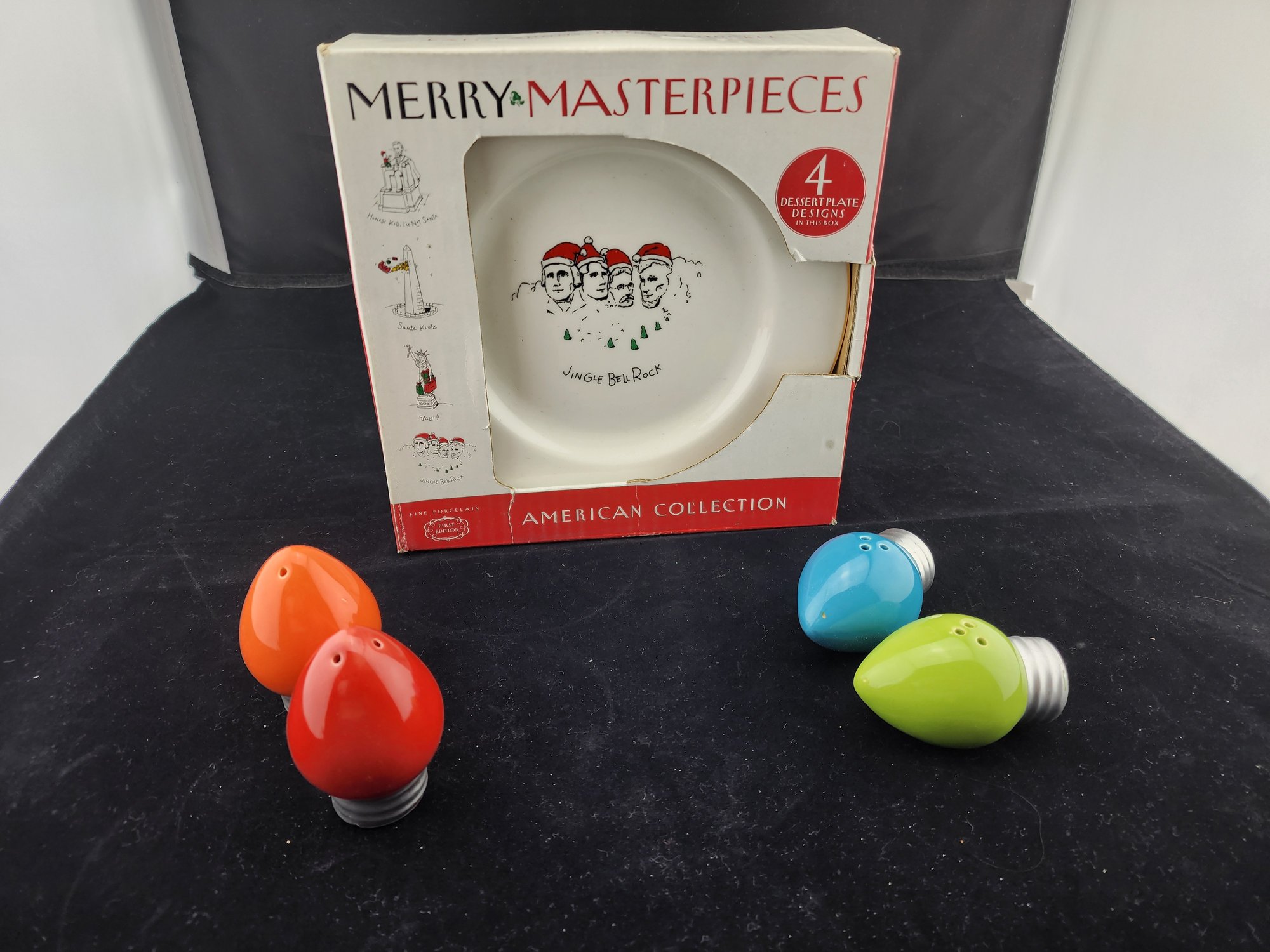 4 salt and pepper shakers that look like Chrismtas light bulbs