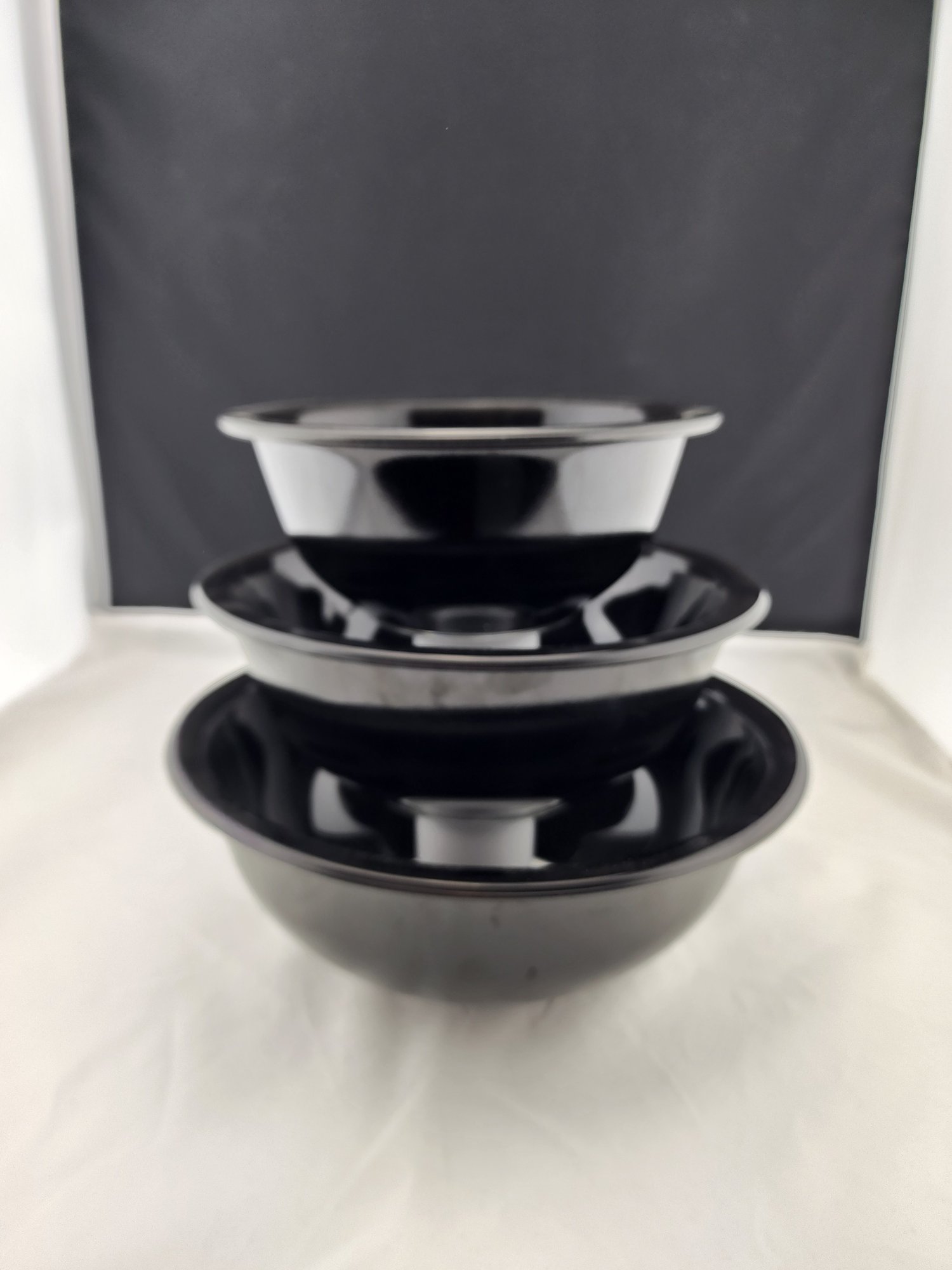 Set of 3 nesting glass bowls. Sizes: 2.5 L, 1.5 L, 1 L.