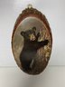 This wall hanging has some minor crackles on the bear but it is a nice solid piece of wood and hangs nicely! It measures 11x6.5”.