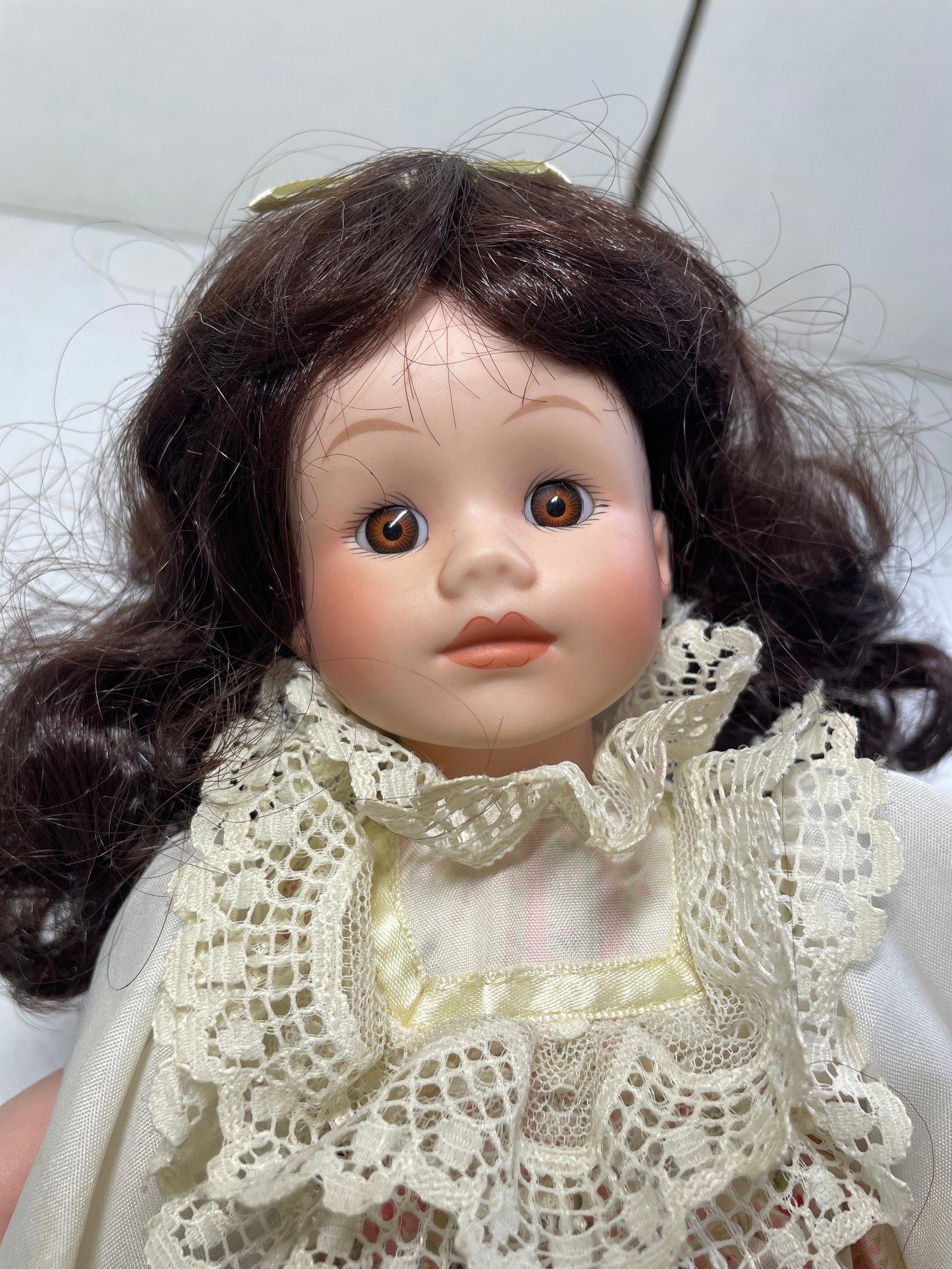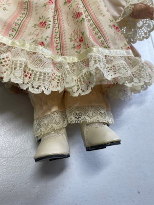 Doll is in great condition. No cracks or breaks. Some minor discoloration/staining on the pants. 13” tall.