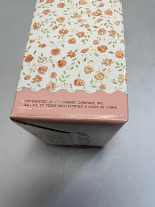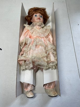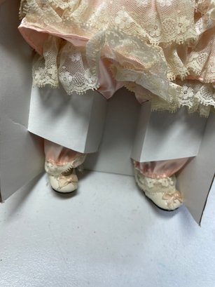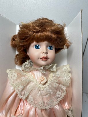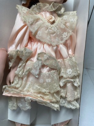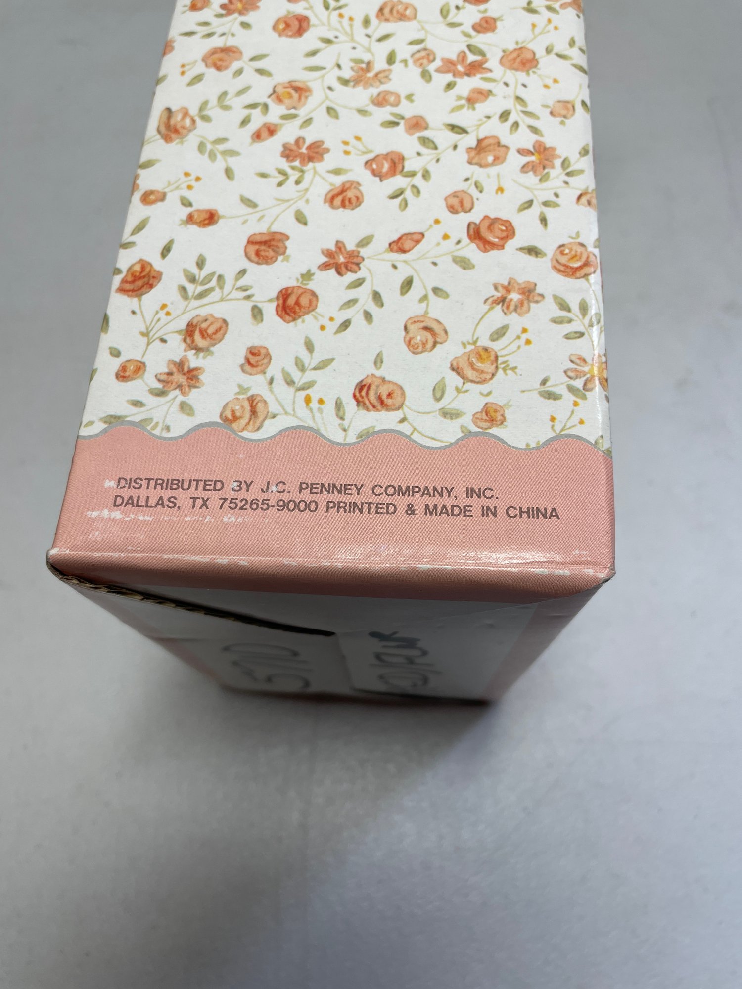 This is a beautiful porcelain doll from JCPENNY. 16” tall. No rips, stains, breaks, or tears. Box is in good condition.