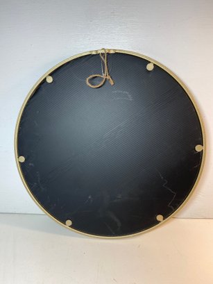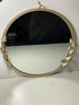 This mirror is new with tags and is in beautiful condition overall! There is some marks on the back but otherwise I see no flaws. It measures 16” in diameter and is “place& time” brand.