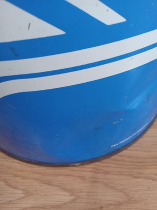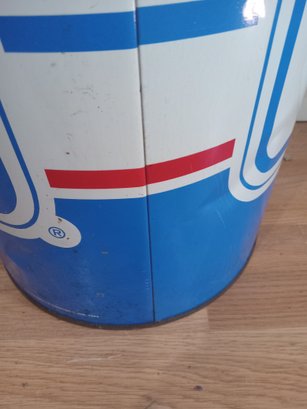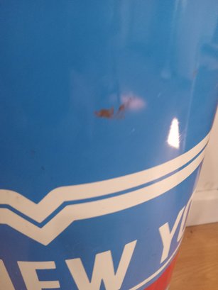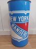 1994 New York Rangers trash can! Made of metal, it stands 19.25 inches tall and is 10.25 inches in diameter. It has some dents and obvious signs of ware, the worst of which is pictured, the inside is fairly rusty. Displays nicely overall!