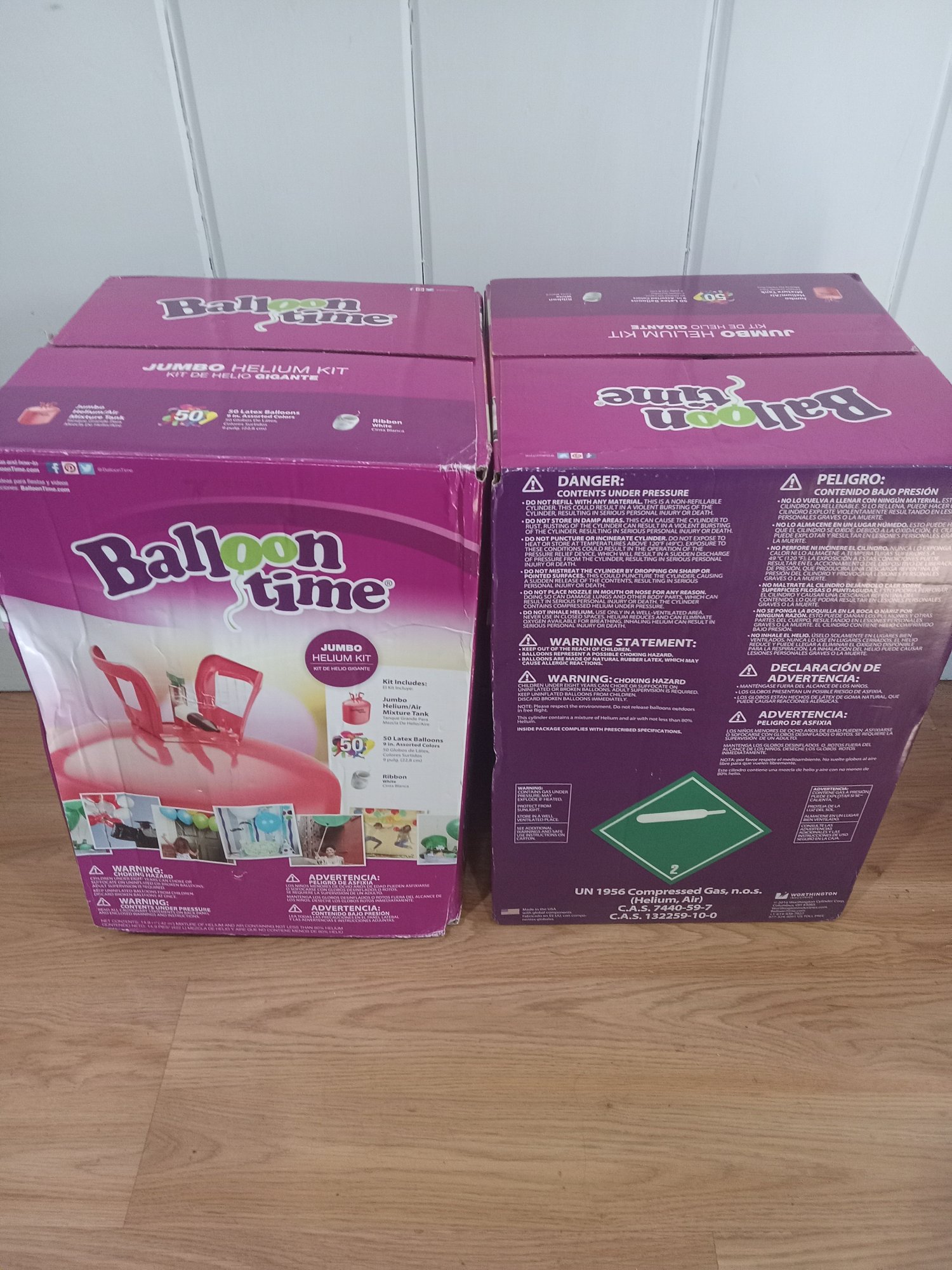 2016 balloon time helium set, both were sealed we opened one to inspect the box and photograph. Set does not expire and should be working great although untested. Comes with 2 sets.