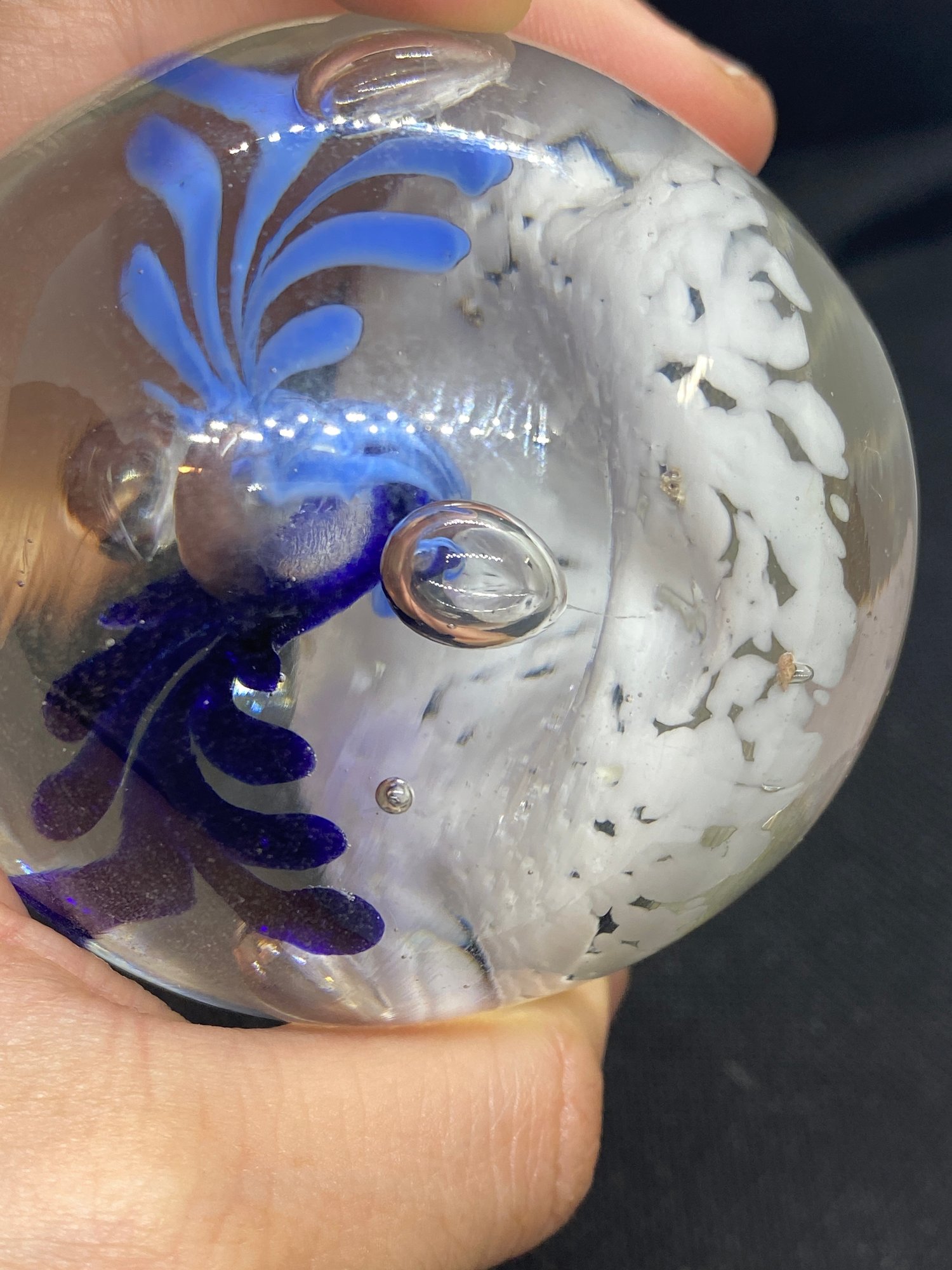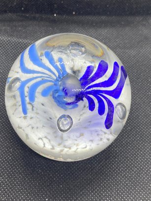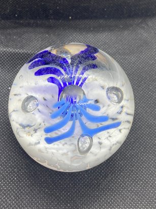 This paperweight is in beautiful condition and doesn’t appear to have any flaws. It measures 2” tall and 8.5” in diameter.