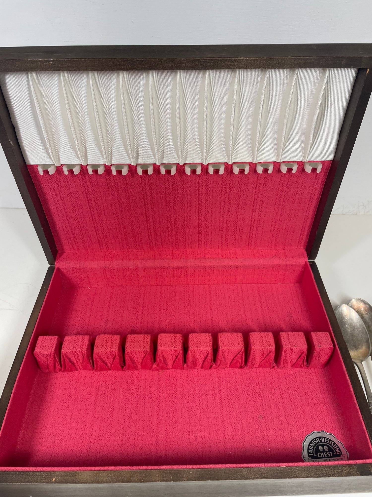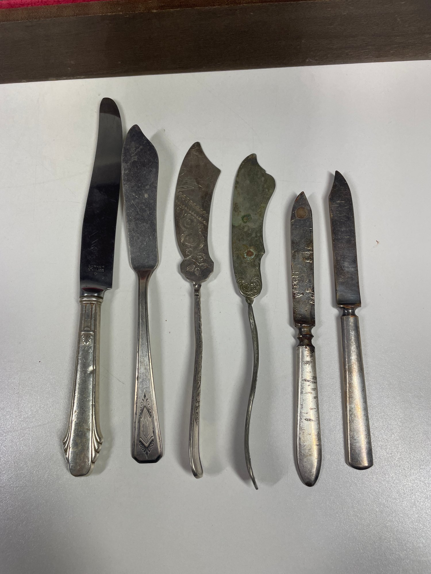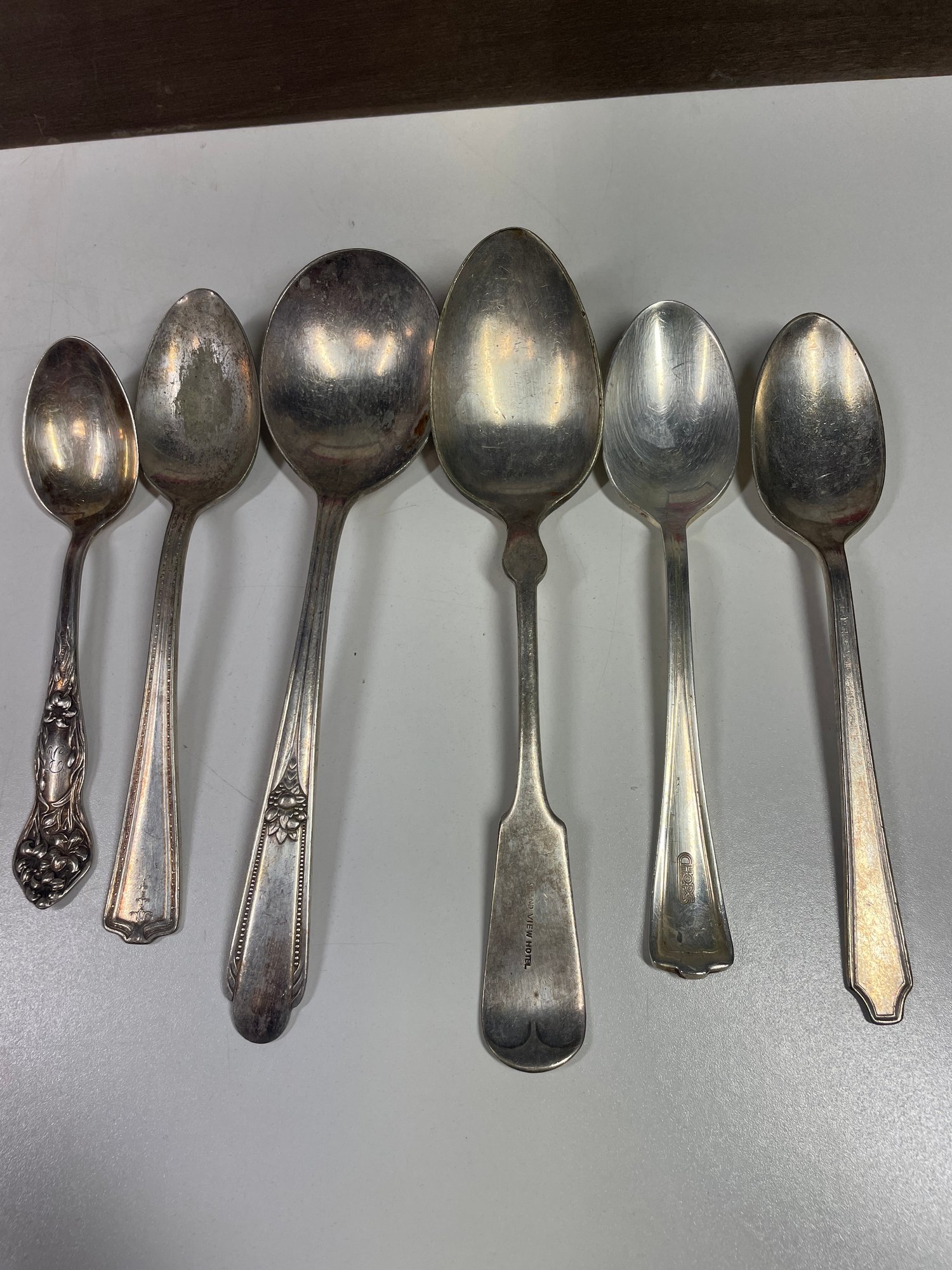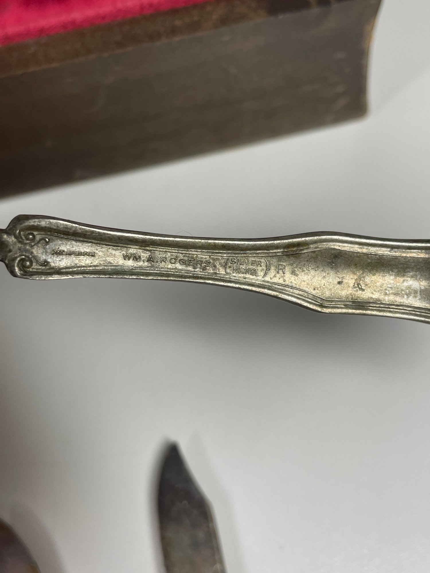 This is a mixed lot of mostly silver plated flatware. There may be some stainless mixed in. There is no solid silver. There is one marked “silver nickel”. They are in various conditions some with more tarnishing then others and various scratches. Awesome if you collect silver plate or want to start. This lot also includes the box which is in good condition with minor scratches here and there.