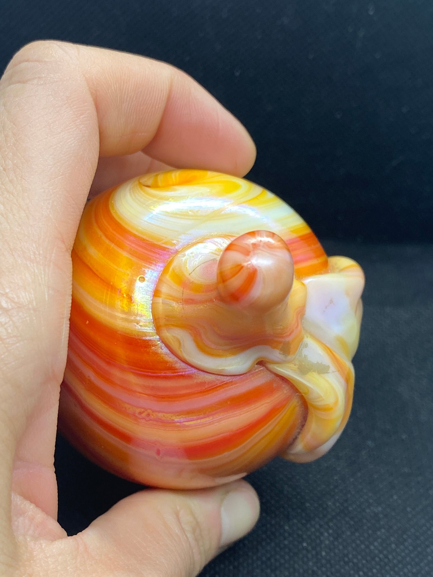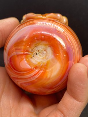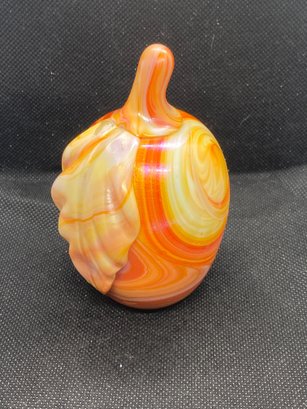 This paperweight is in beautiful condition! There is one tiny scuff mark towards the top of the leaf where is meets the stem but otherwise there are no flaws. It measures just under 4” tall and 8” in diameter.
