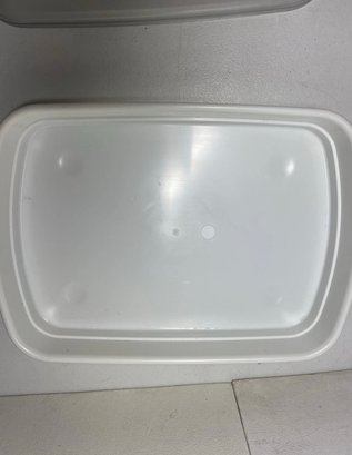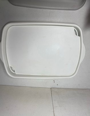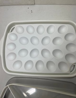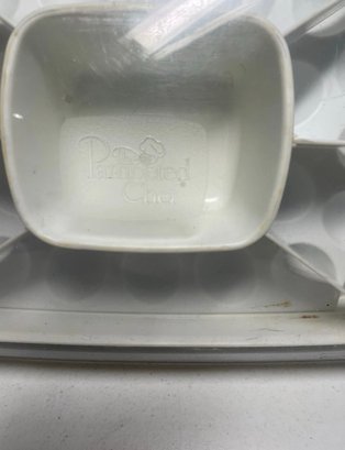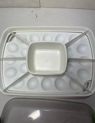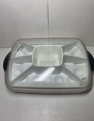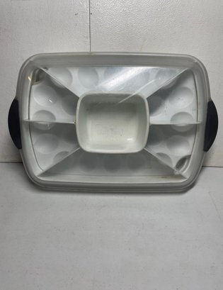 Serving tray is in good condition. Some scratches on the lid. Can be for veggies or deviled eggs! Chillzanne!!! Measures 16x11.