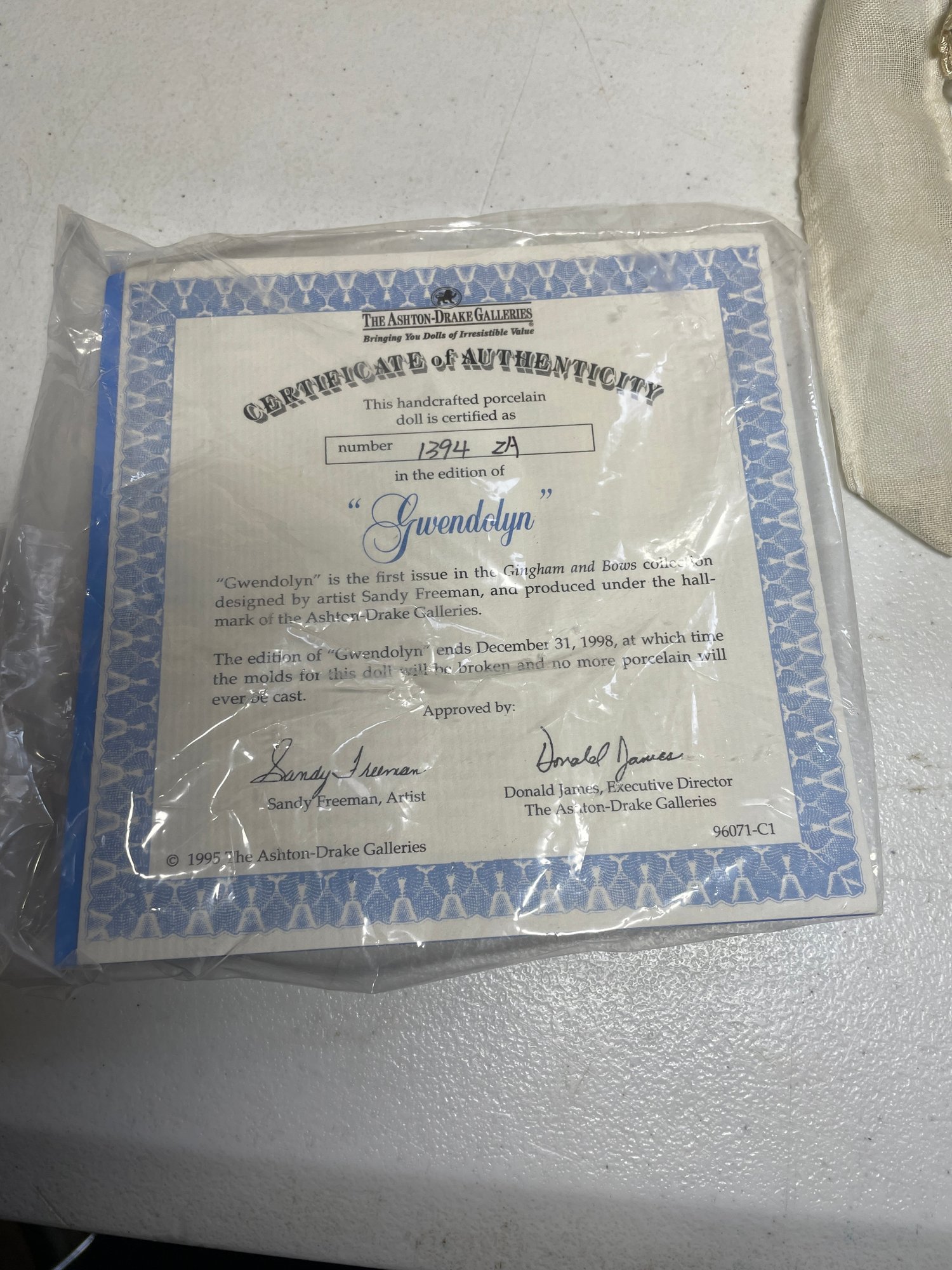 Doll is in beautiful condition. Comes with the COA. 16” tall. No breaks or cracks.