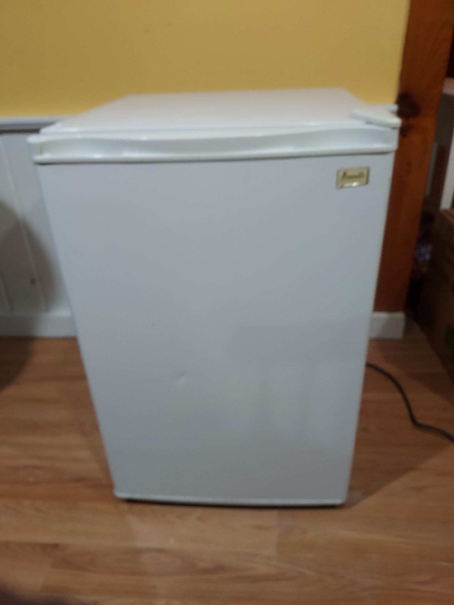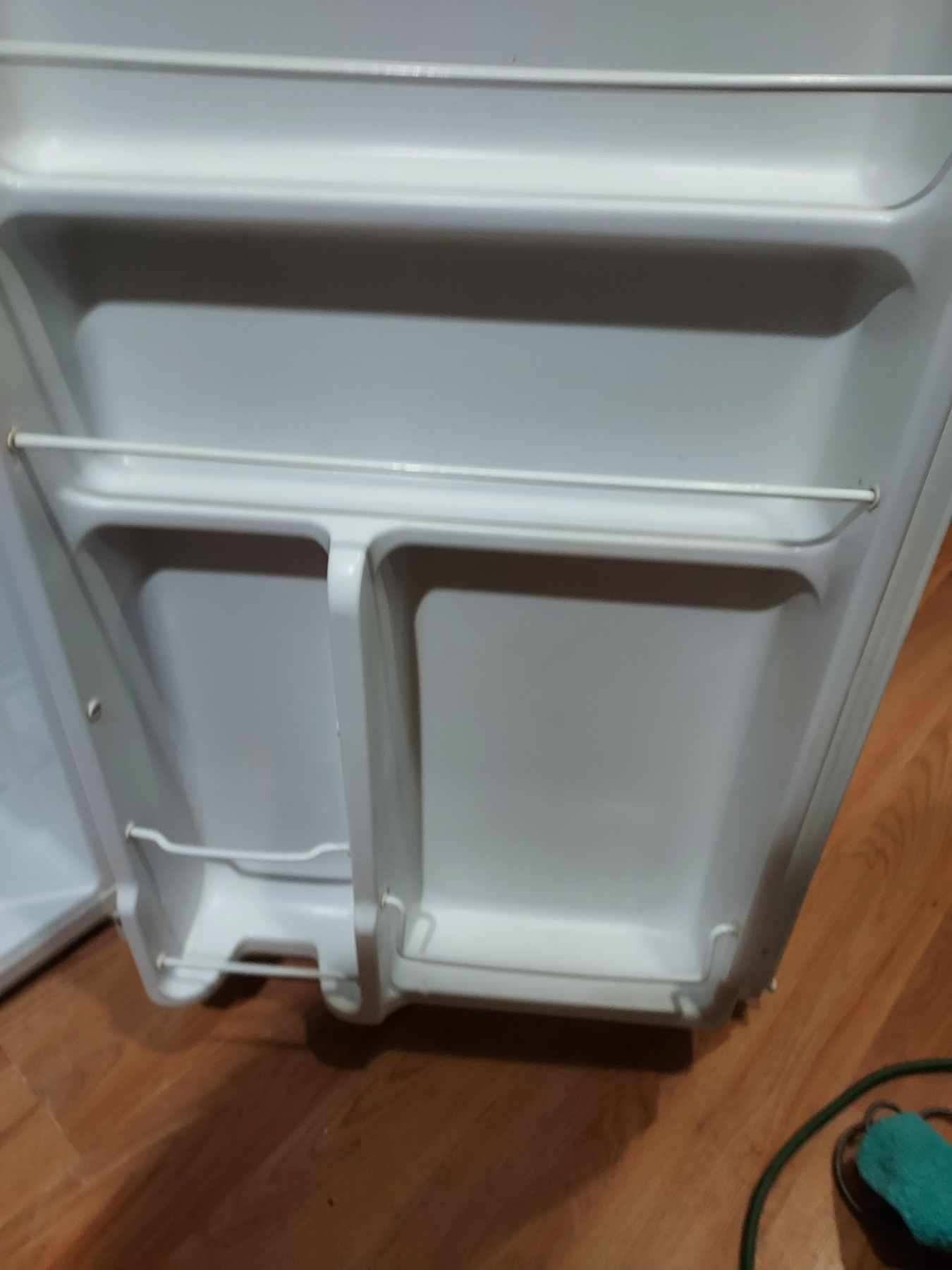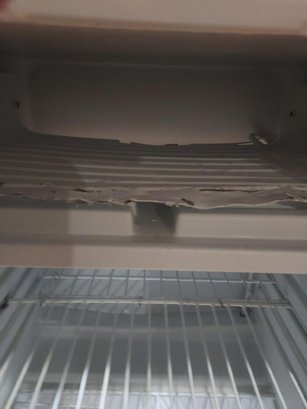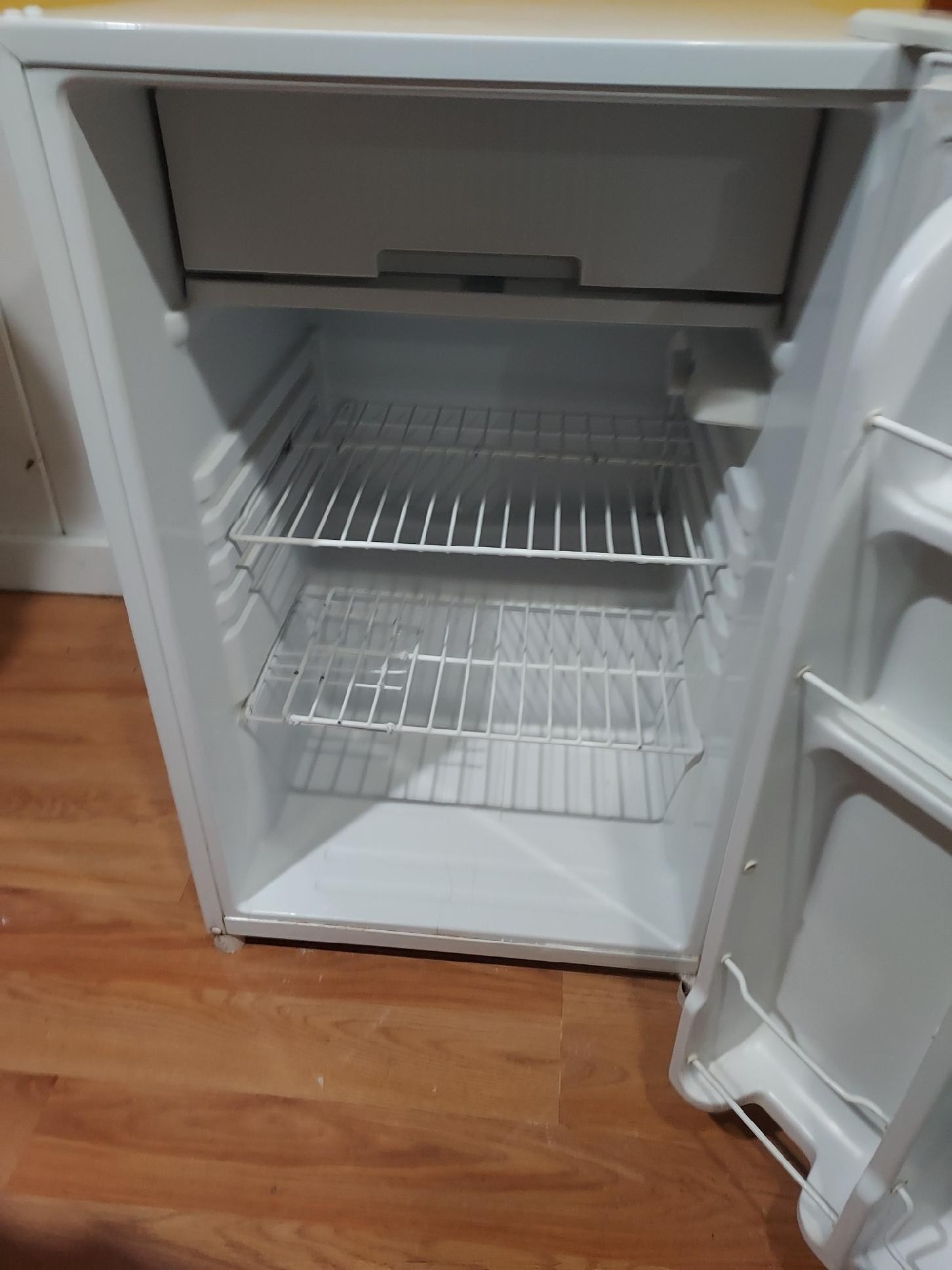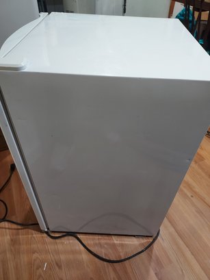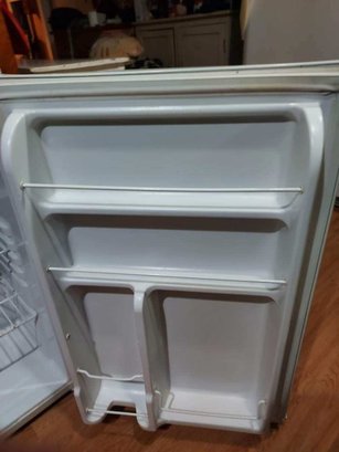 The fridge works fine however the ice compartment is bent up a little bit. The fridge Measures 20 inches wide x 21.5 deep x 31.5 tall.