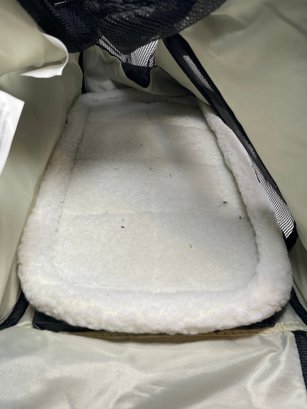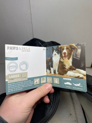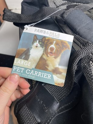 This is a fabric pet carrier by Paws & Pals. Brand new with the tags. Has some fuzz on the inside that could get cleaned out. Size large 19” long, 10” wide, 13” tall. 20lb capacity.