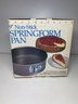 This cake pan is brand new with no flaws! It measures 9” in diameter and 3” tall.