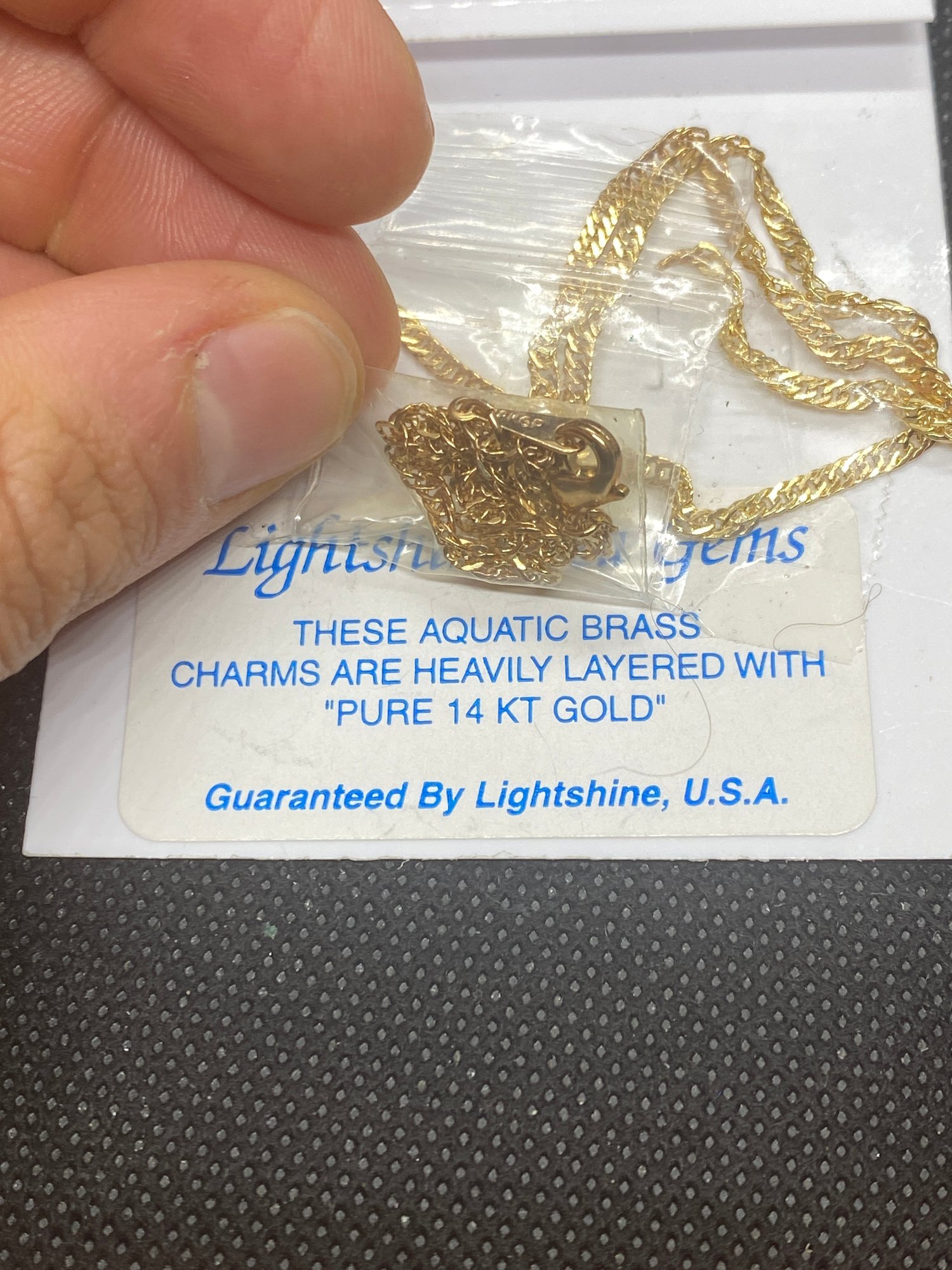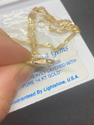 This necklace is brand new! It is marked “ 18KGP” on the clasp but the packaging says it is “ pure 14K gold”