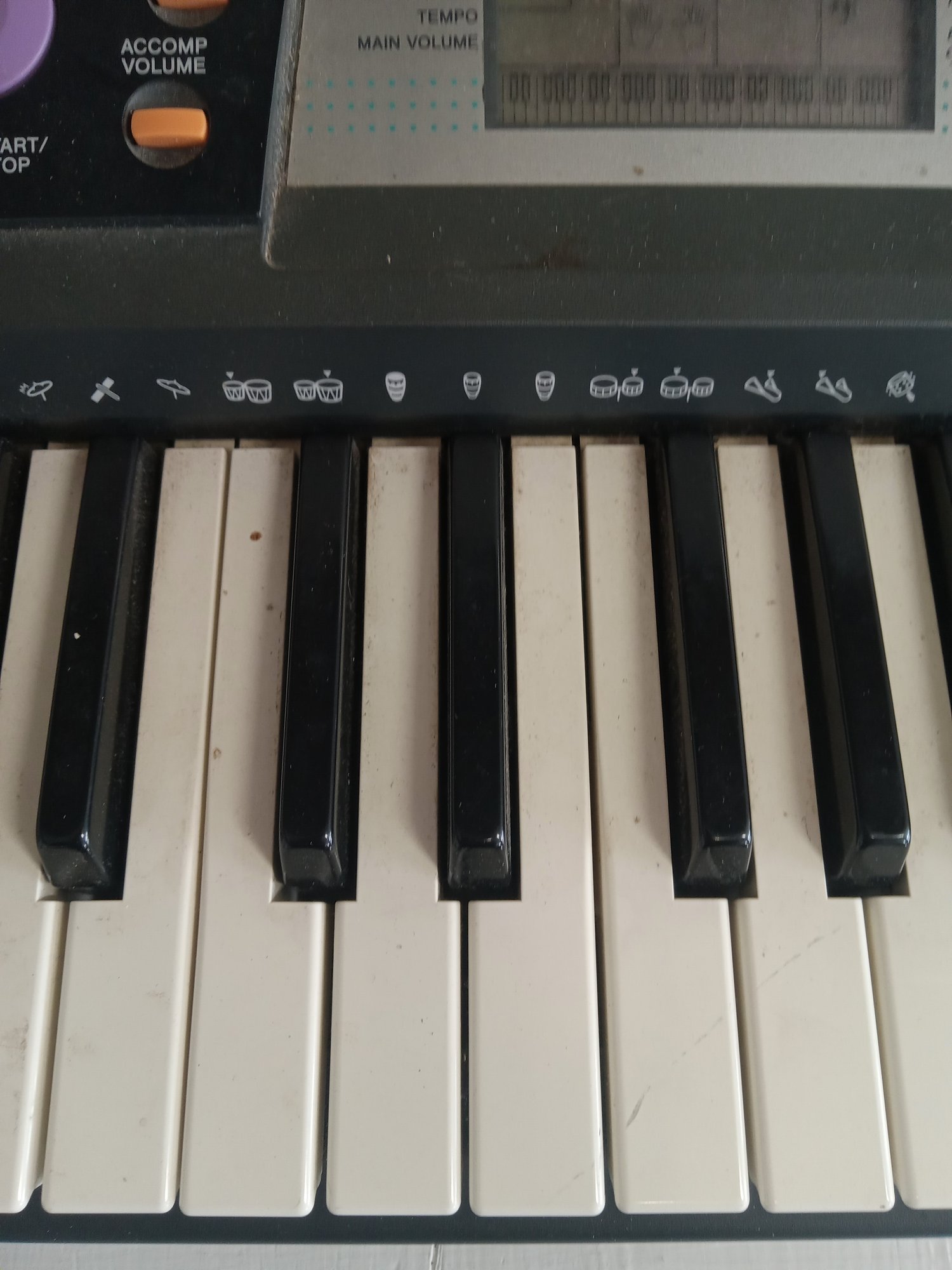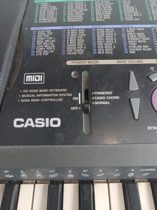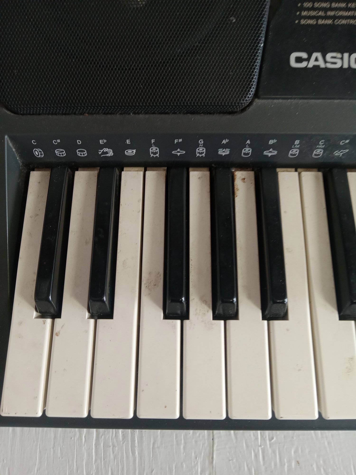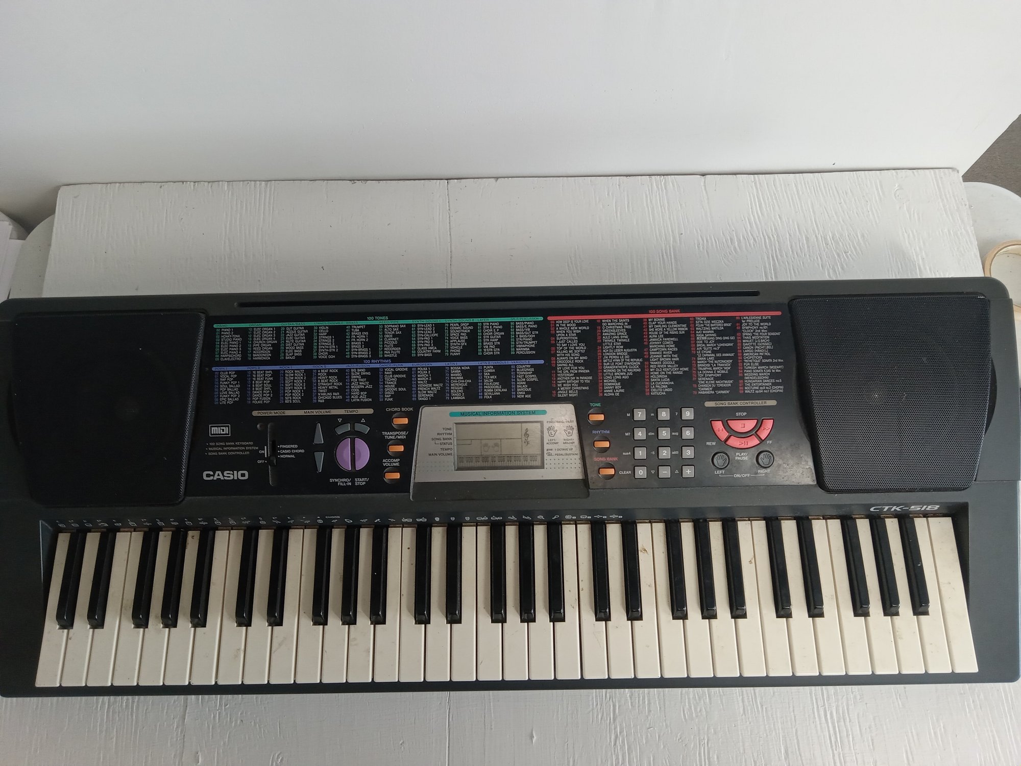 Casio electric keyboard ctk-518, tested and working! Does not have an AC adapter! Needs a good cleaning, there's sticky residue on some of the keys from tape!
