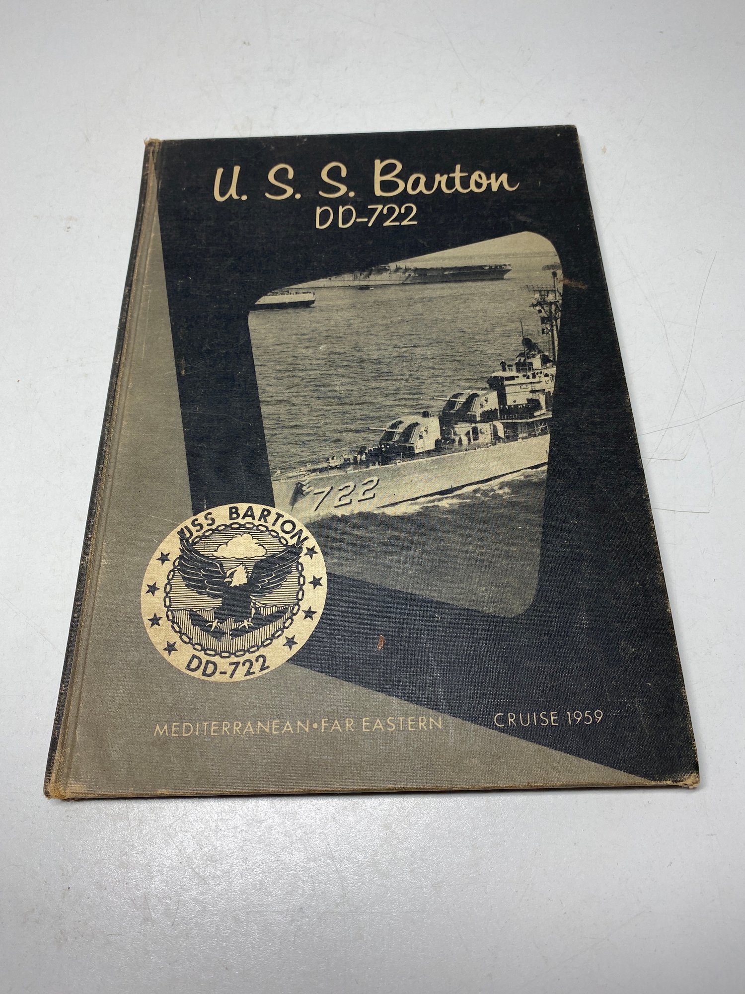 This photography book has some minor wear and discoloration on the cover and pages. The binding is just starting to come off the first couple of pages but is still intact! This book is from cruise 1959 and is an awesome piece to have.