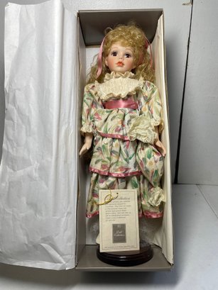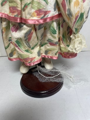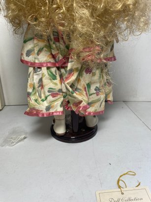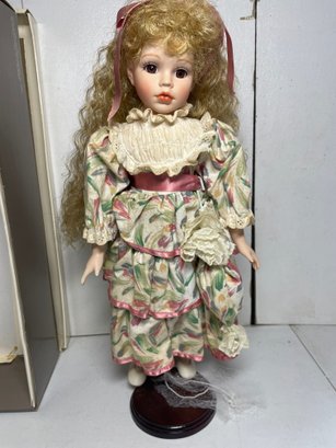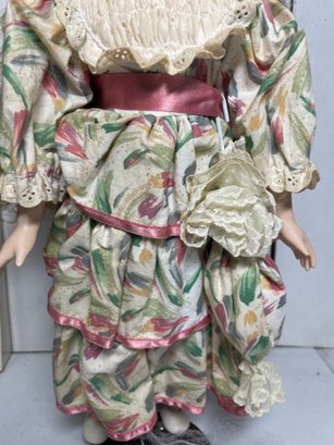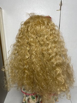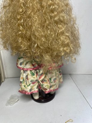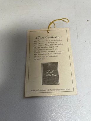 This is an 18” porcelain doll from JCPENNY. She’s in good condition other than a few discoloration spots. No cracks or breaks.