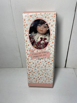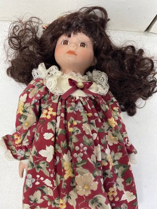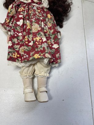 This is a 16” porcelain collectible doll from JCPENNY. She’s in good condition. She’s in good condition other than a few stains as shown in pictures. No breaks.