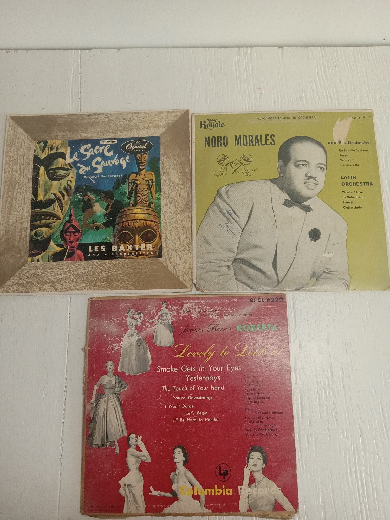 Records themselves are in decent conditon overall but may not play thru without issue. "Lovely to look at" is torn so the vinyl slides out. There's some notable ware and tears in each sleeve. Overall the sleeves are poor.