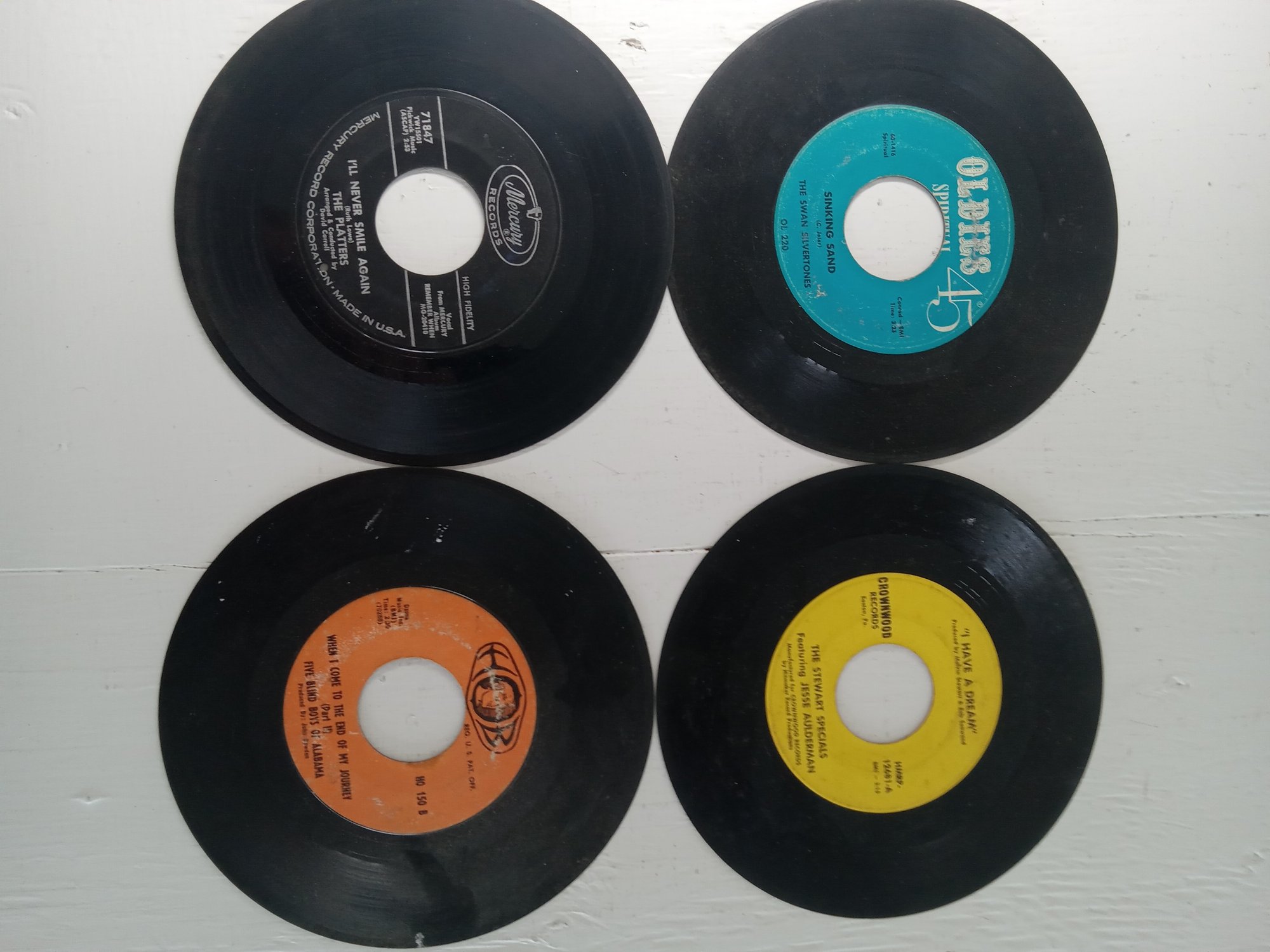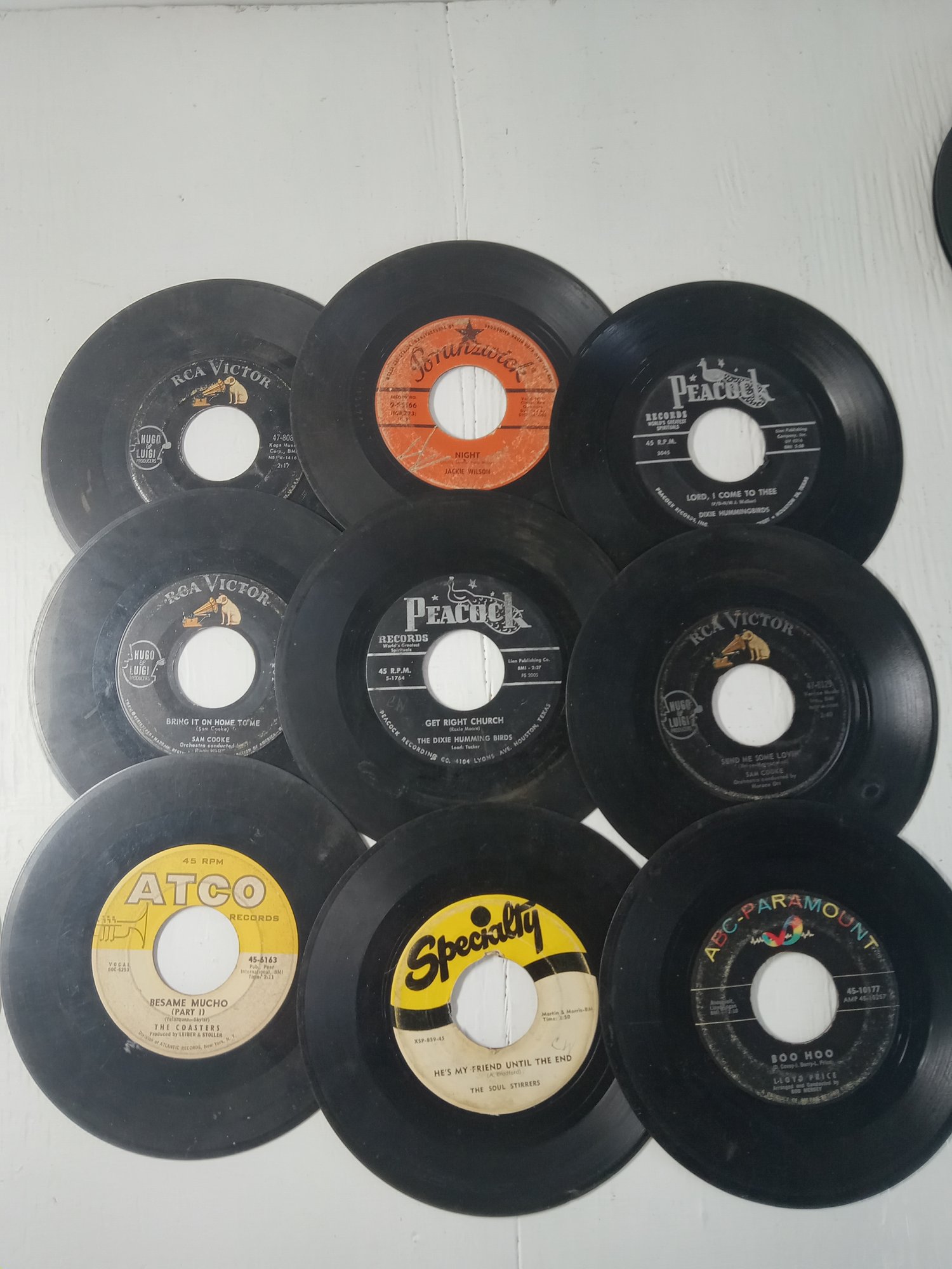 Lot of various 45s, they're mostly in poor conditon. They are a variety of different genres.
