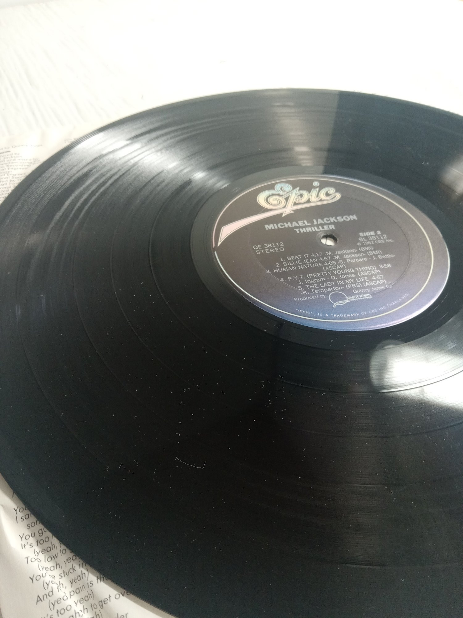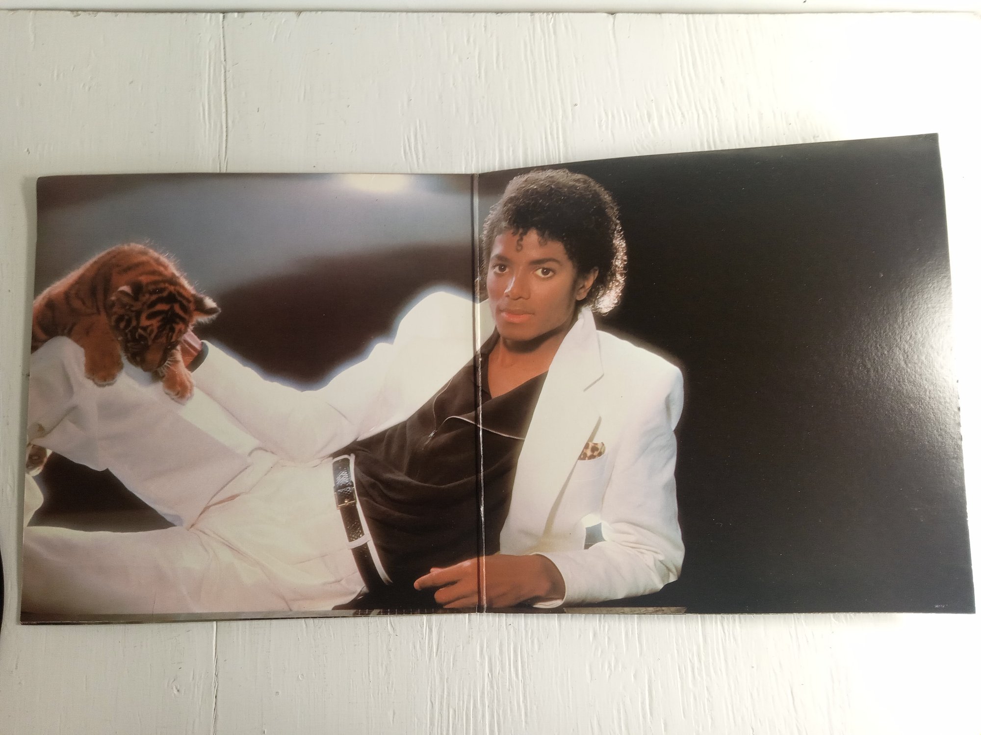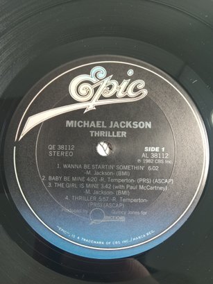 Michael Jackson-Thriller, the sleeve has a massive tear so the vinyl falls out *pictured* other than that and a few creases and signs of ware it presents nicely. The vinyl itself has a few scratches on side 1. May not play thru without issues.