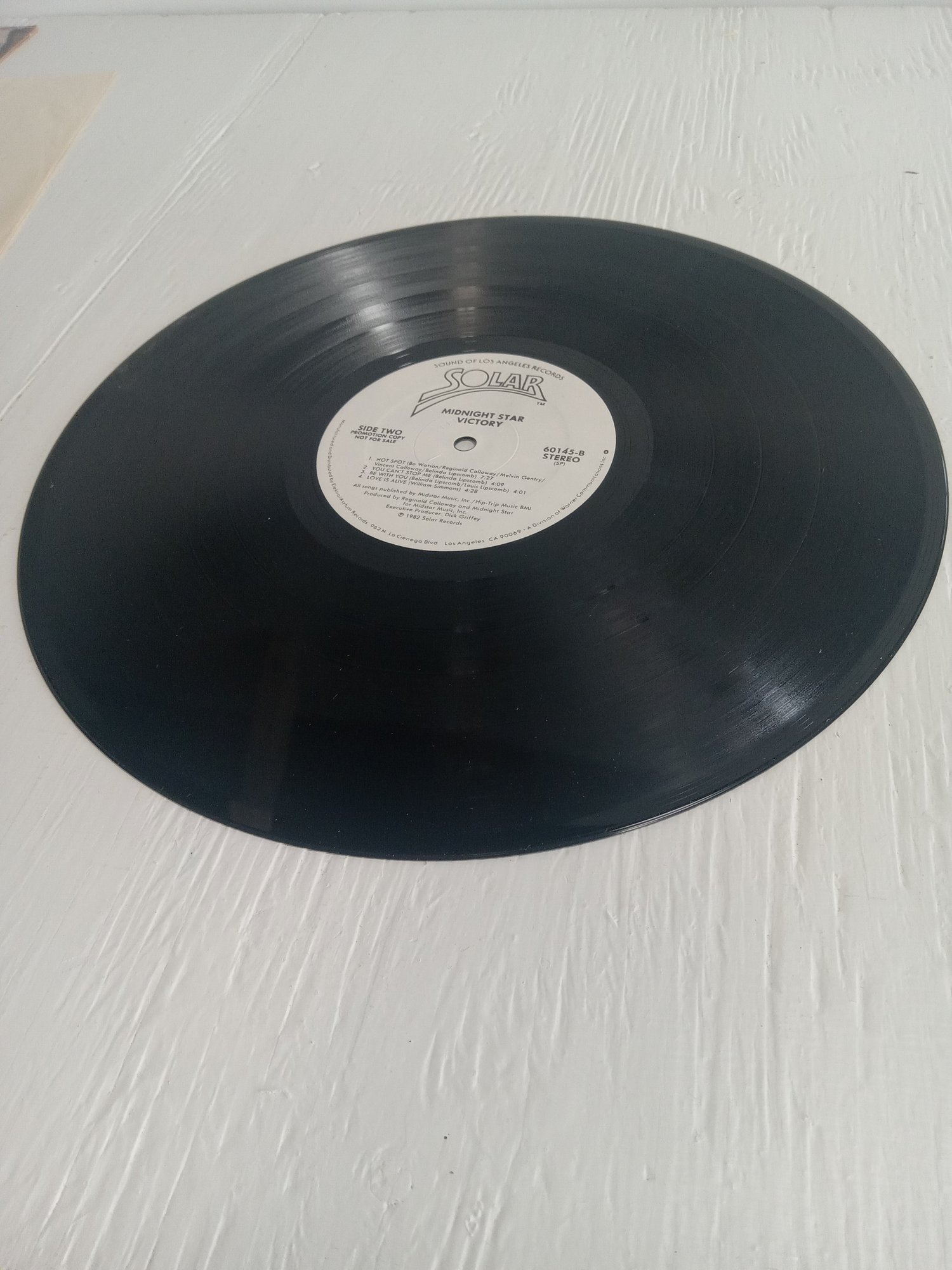 Vinyl and sleeve are both in overall really nice shape, the vinyl itself could use a light cleaning but has no serious scratches. The sleeve has obvious signs of age but overall presents nicely.