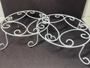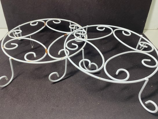 These plant stands have some chips out of the white coating but they are both still nice and solid pieces! They each measures 10” in diameter and 2.75” tall.