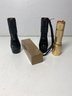 These flashlights are all in perfect working condition! They all have batteries and are ready to be used! They all measure just over 5” tall. One is unbranded,one is a “torch” brand, and two are “Qbeam” brand.