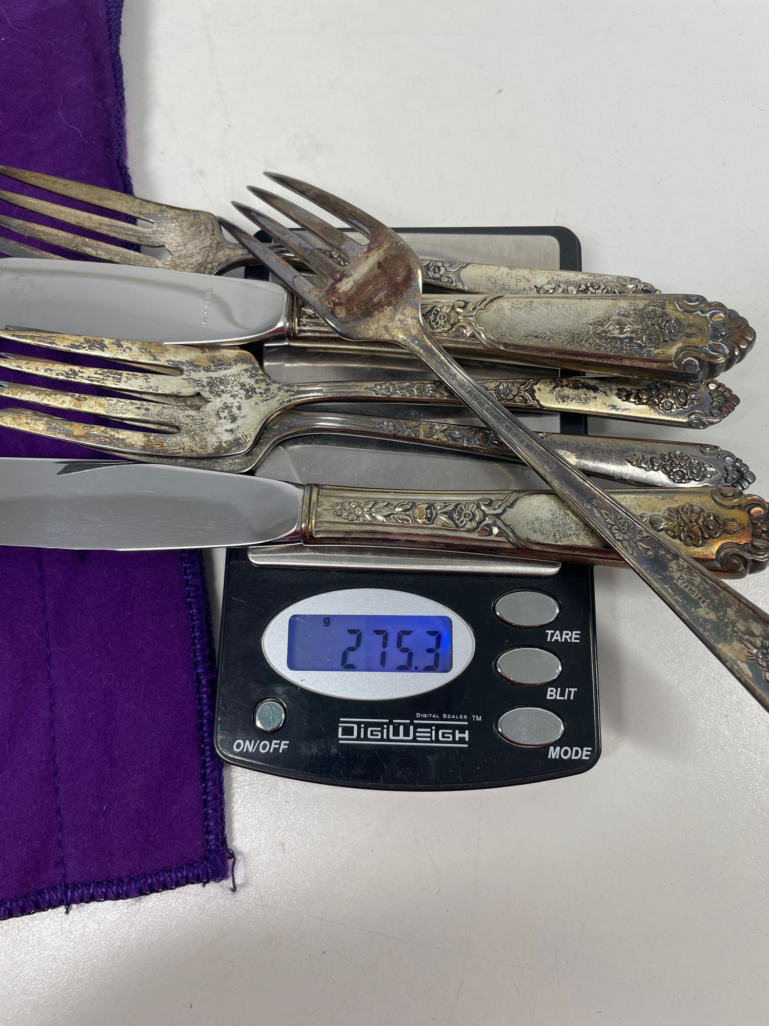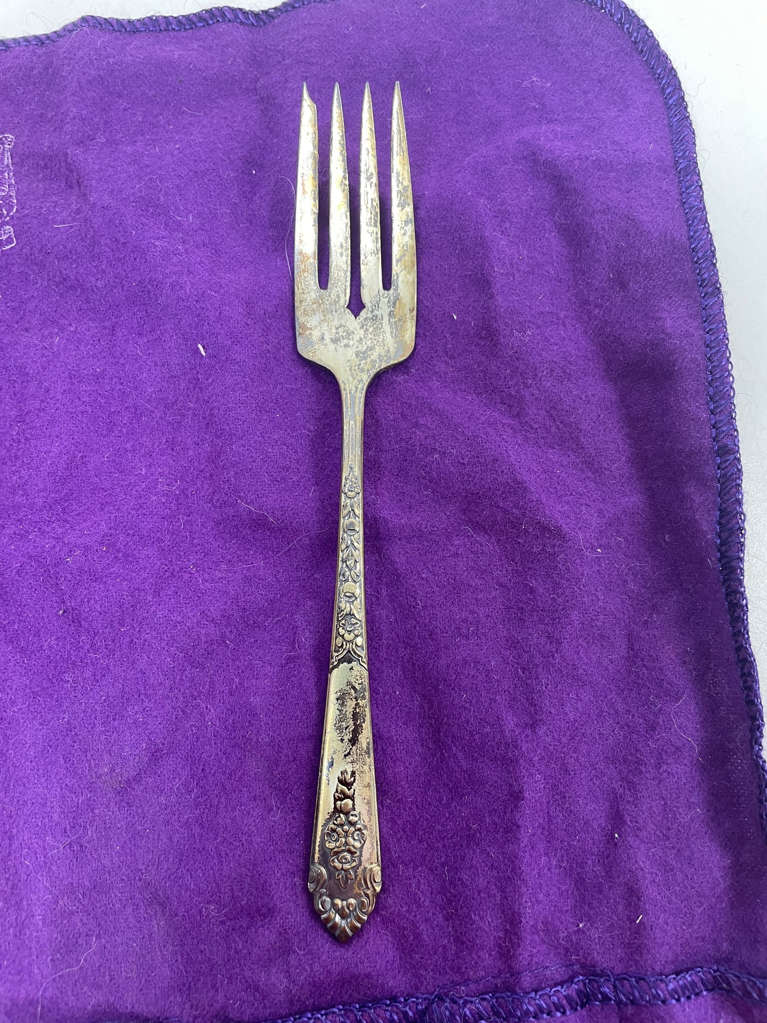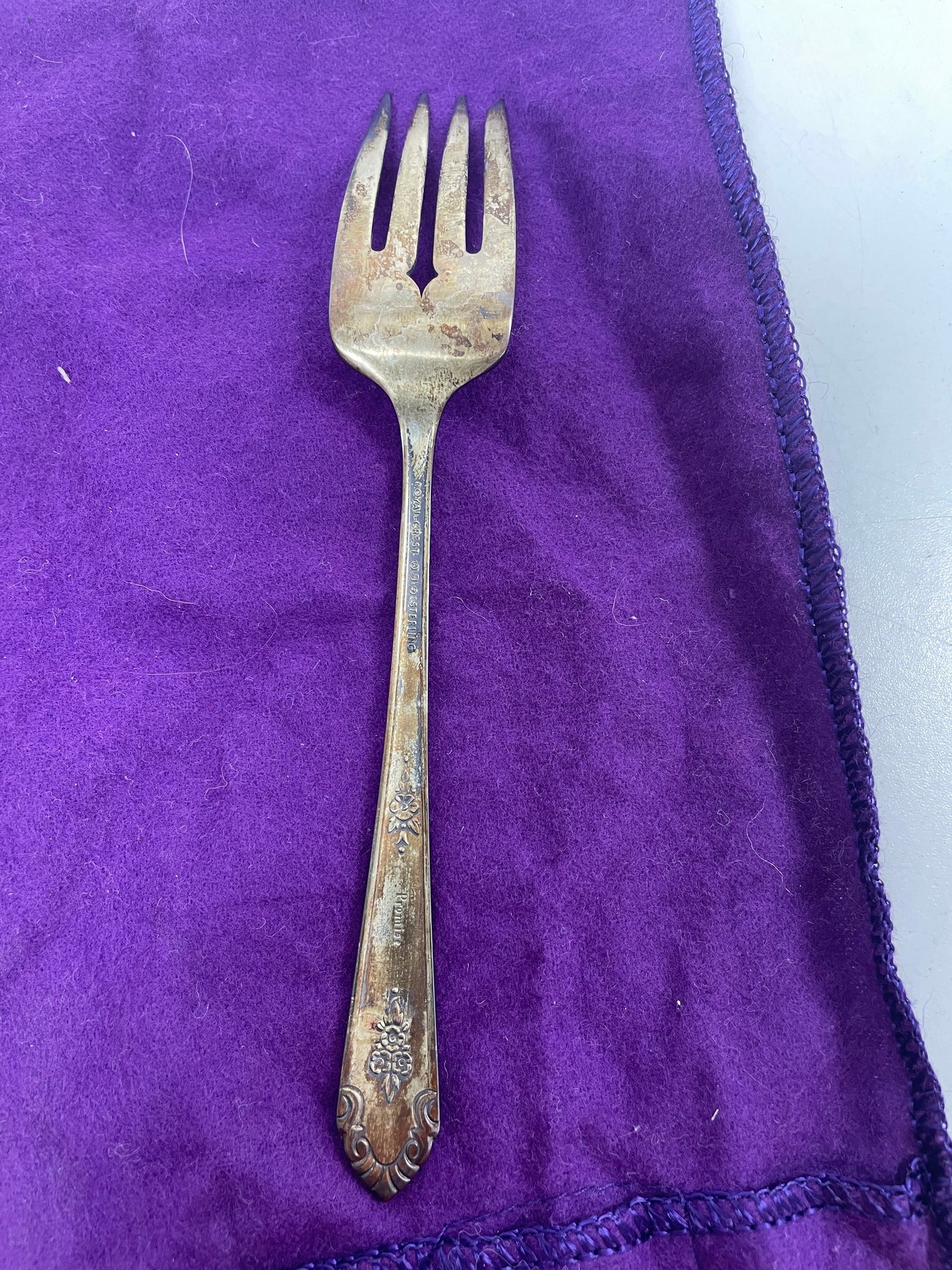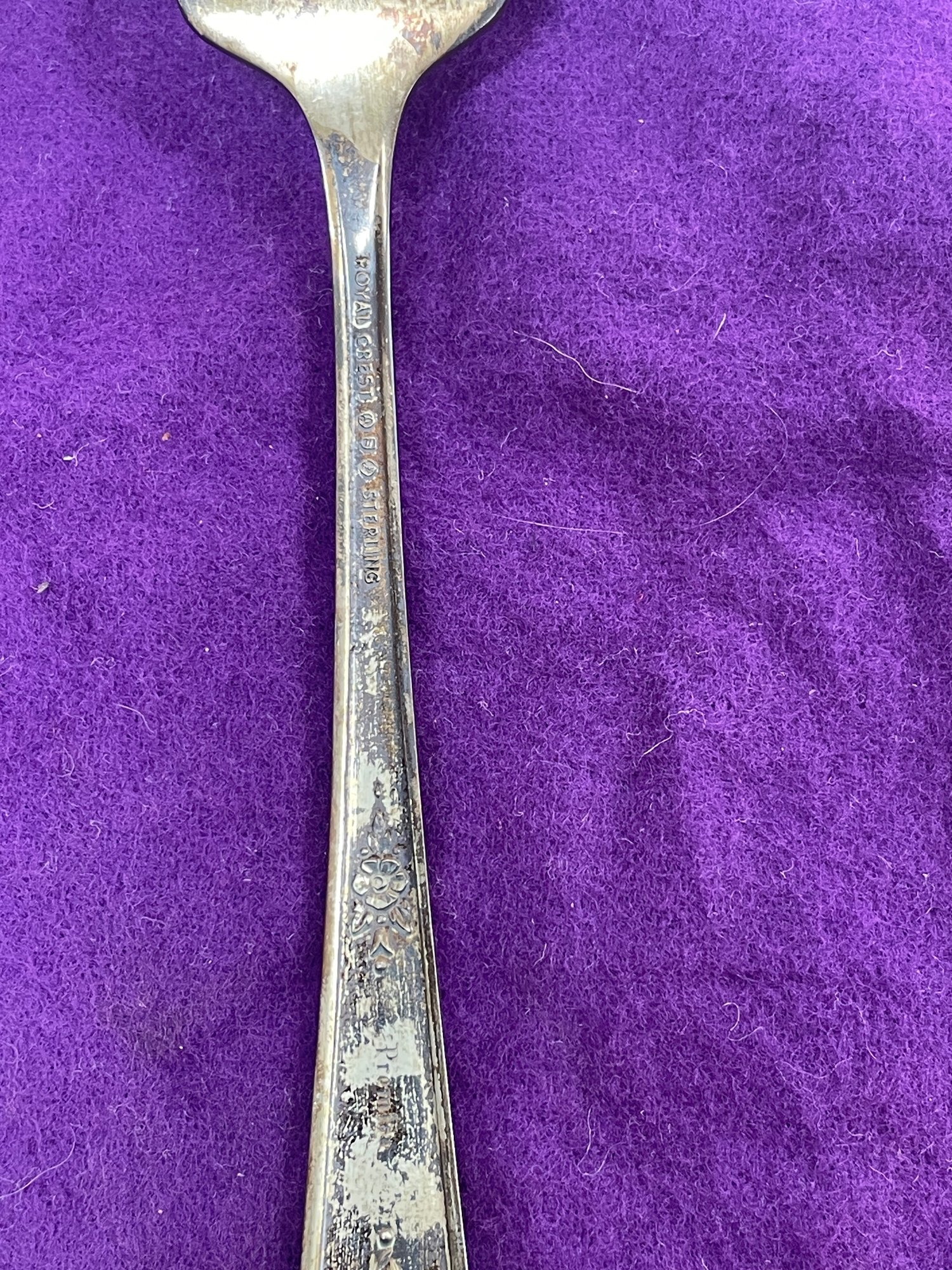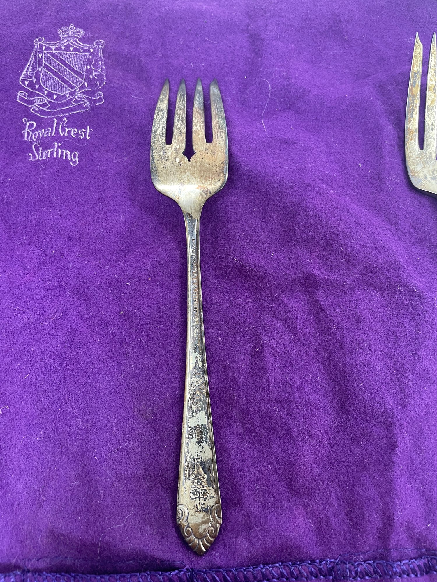 This is a beautiful set of Royal Crest Sterling “promise” flatware. They are in overall good condition but could use a nice polishing. There are 6 pieces total plus the roll up fabric case. Please see pictures for more details.