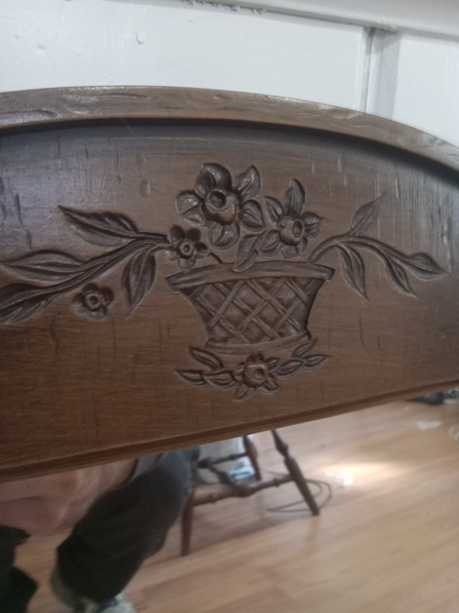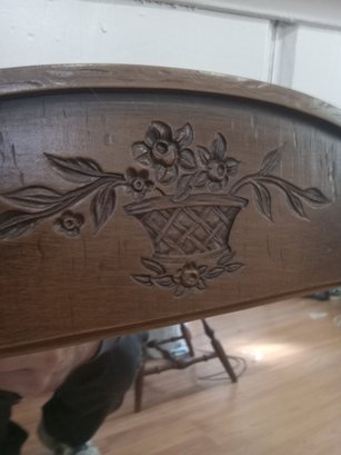 A small wooden mirror with beautiful carvings, mirror is roughly 14x26 inches. No serious cracks,scratches or damage.
