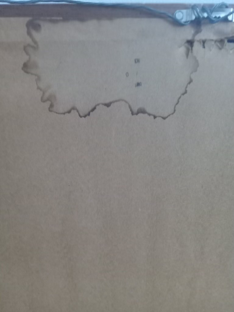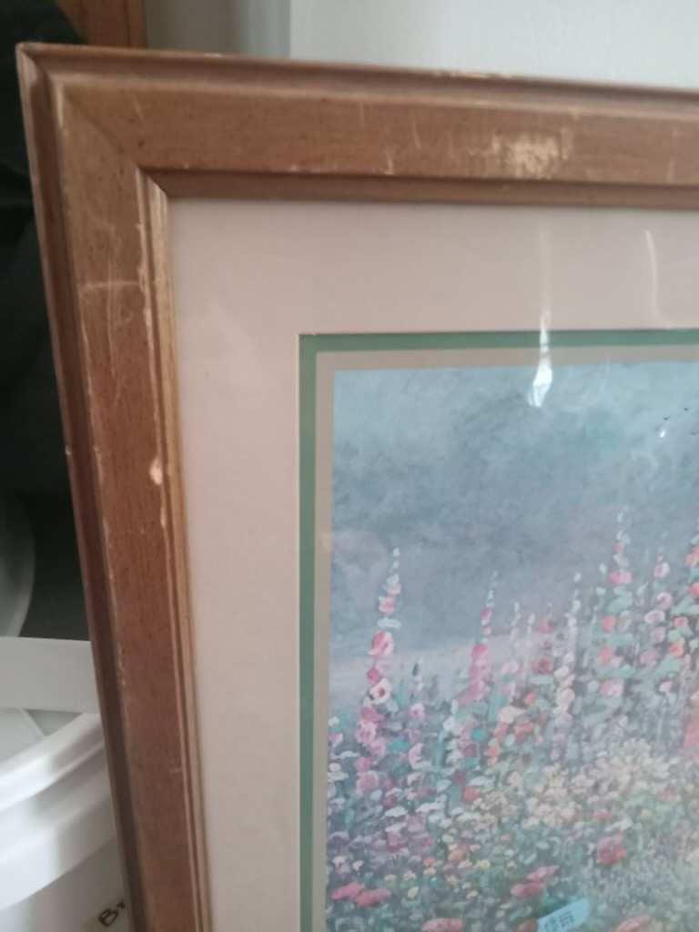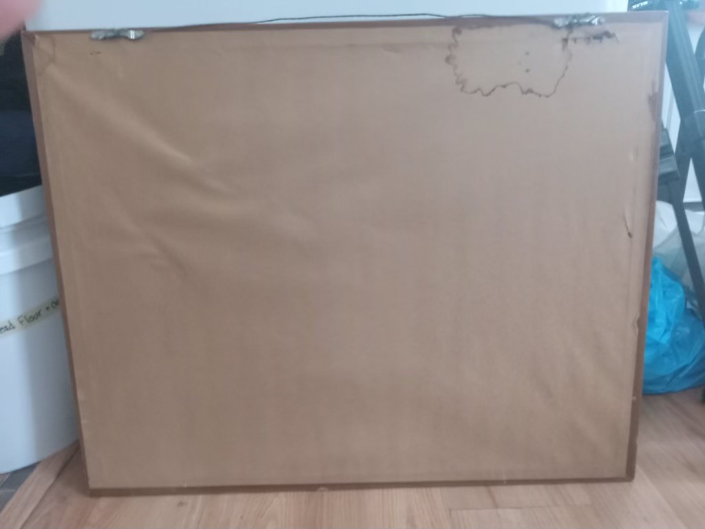 It's a stunning 30 wide x 24 long inch frame, the print itself is in gorgeous shape. The frame has some obvious signs of ware *pictured* and a water stain on the back paper that doesn't appear to bleed thru.