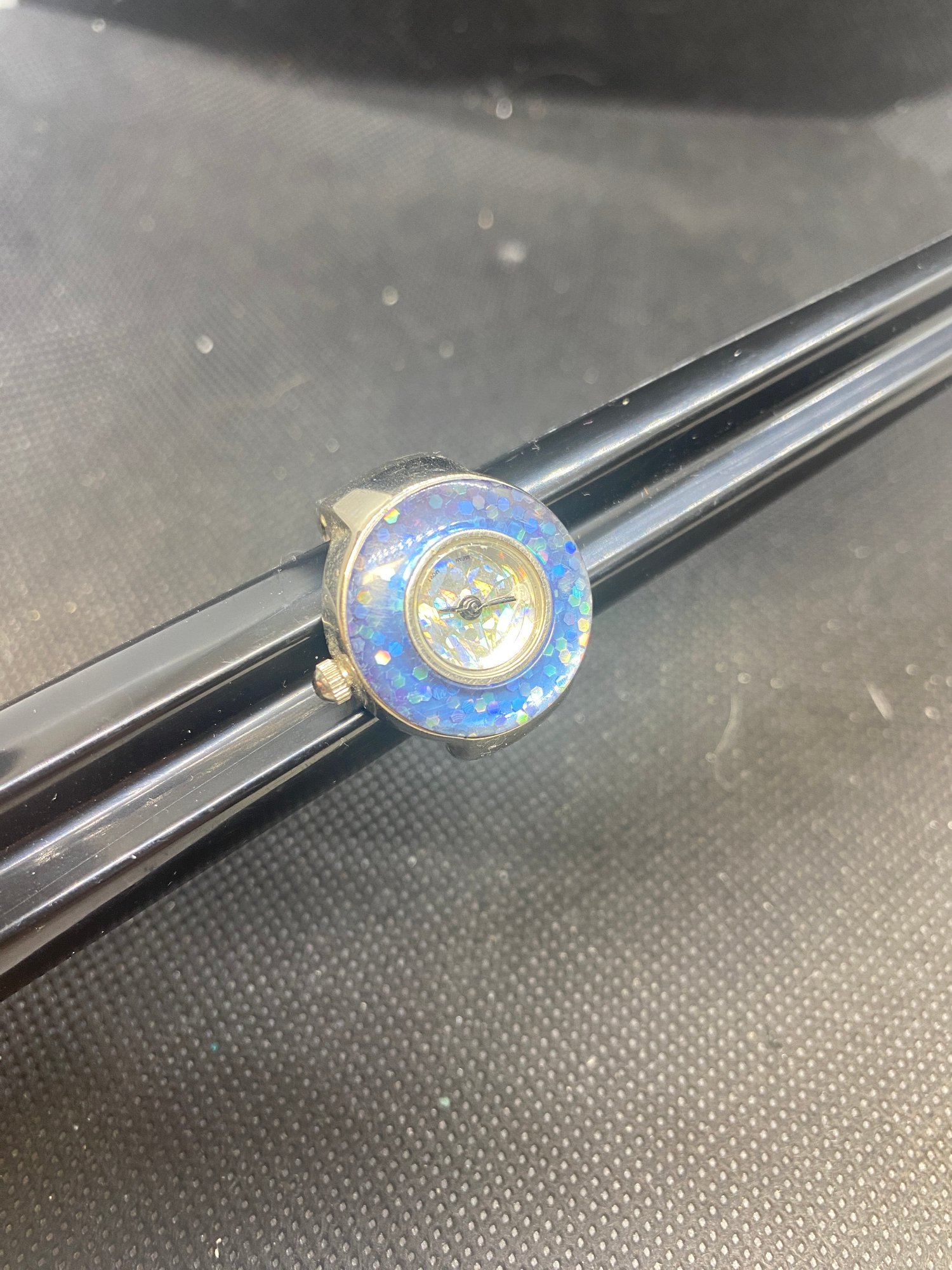 This watch is in beautiful condition but is untested but most likely just needs a battery.It is very stretchy and would fit most any finger!