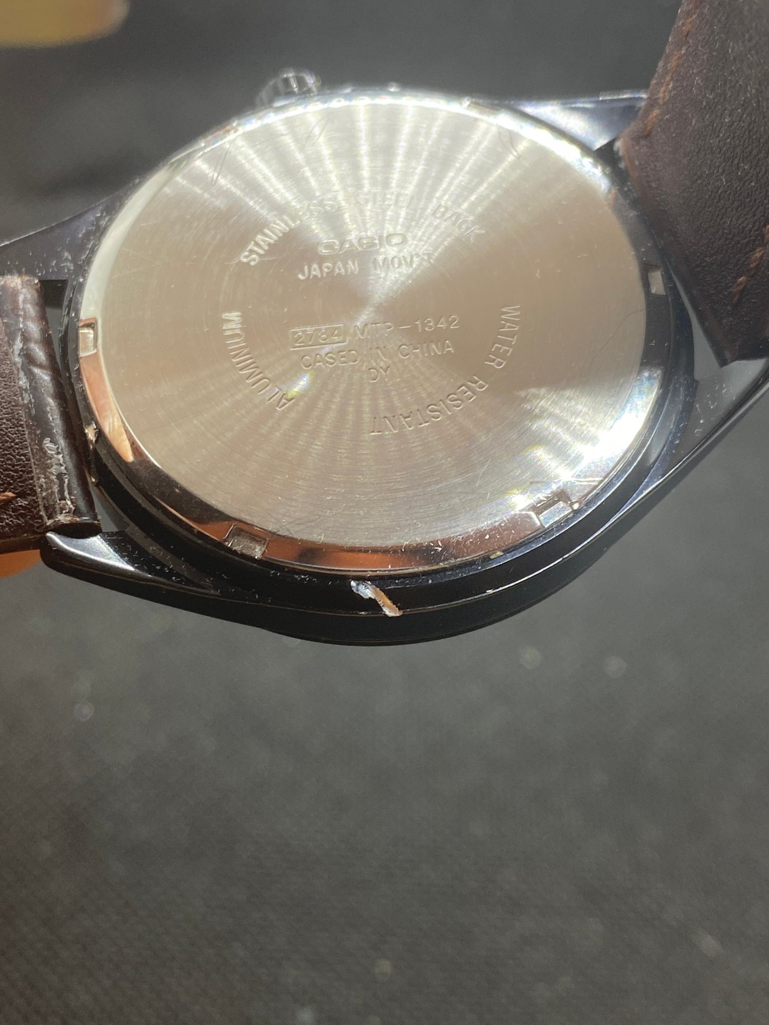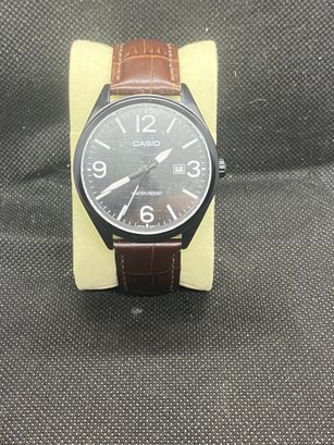 This watch is untested but most likely just needs batteries. The band looks like new and the watch just has a couple of marks on the sides. It is a Casio model 2784.the watch display is not included