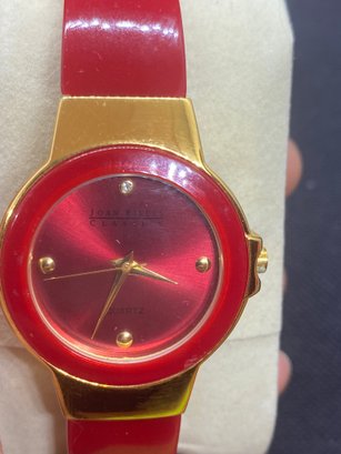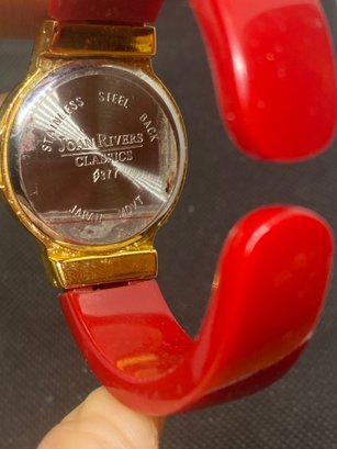 This watch is untested but most likely just needs batteries. It has some very light scratches and would benefit from a little cleaning. It is a Joan rivers classic 377. The watch display is not included.