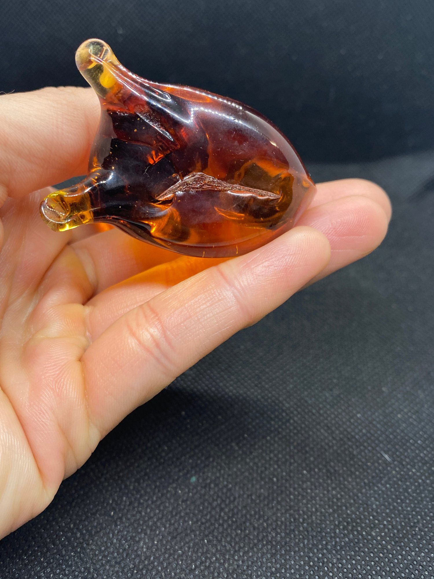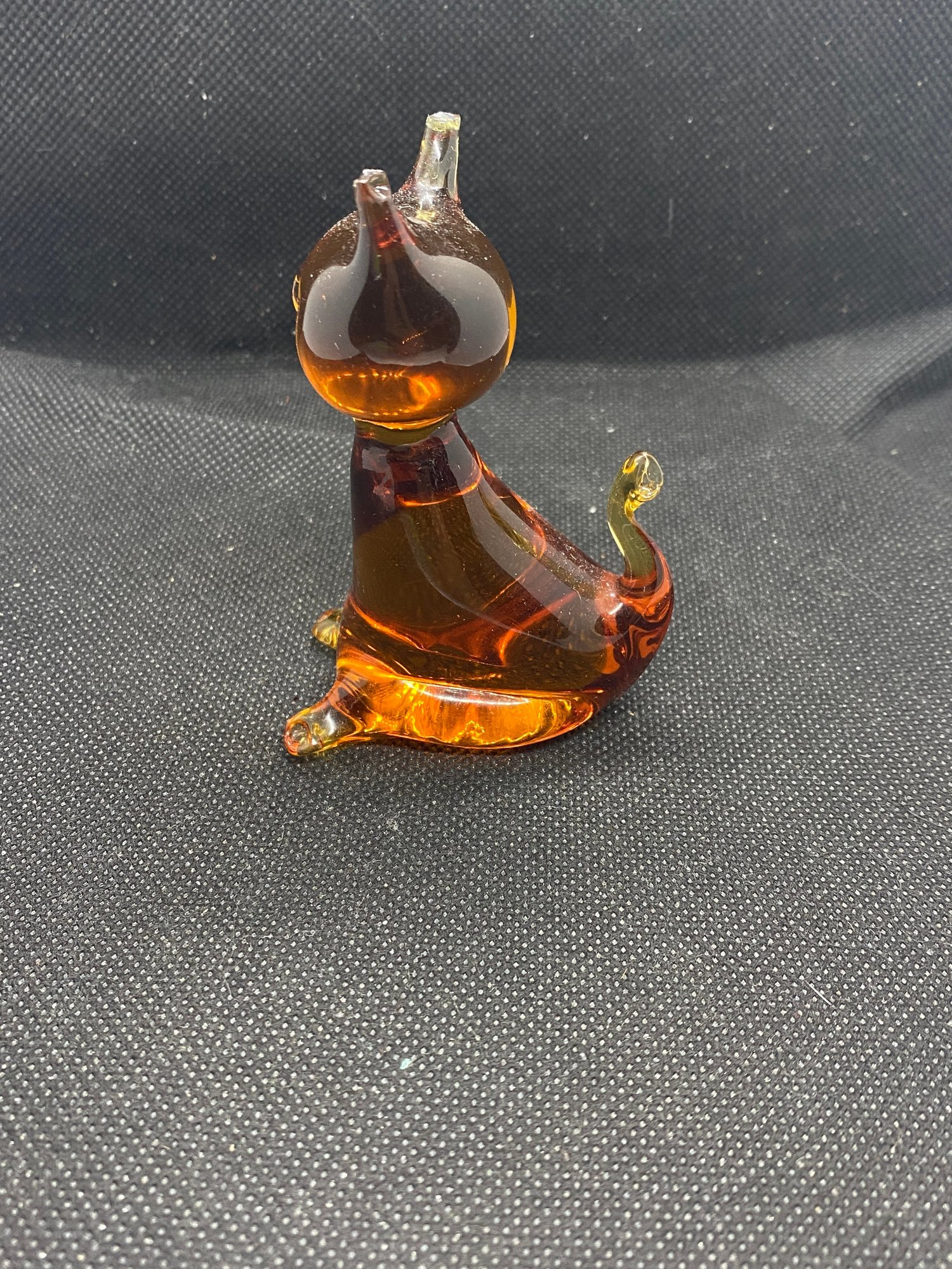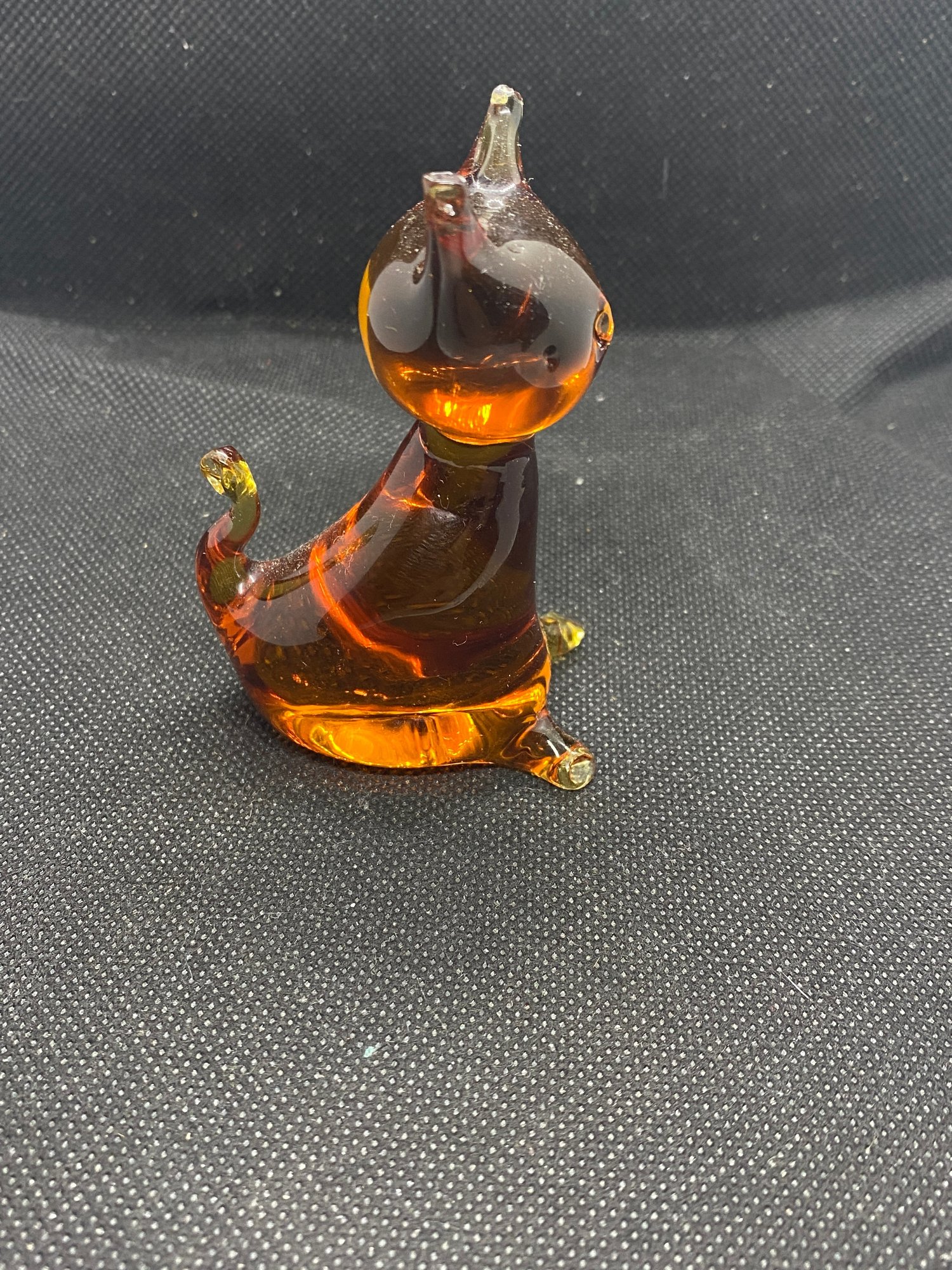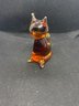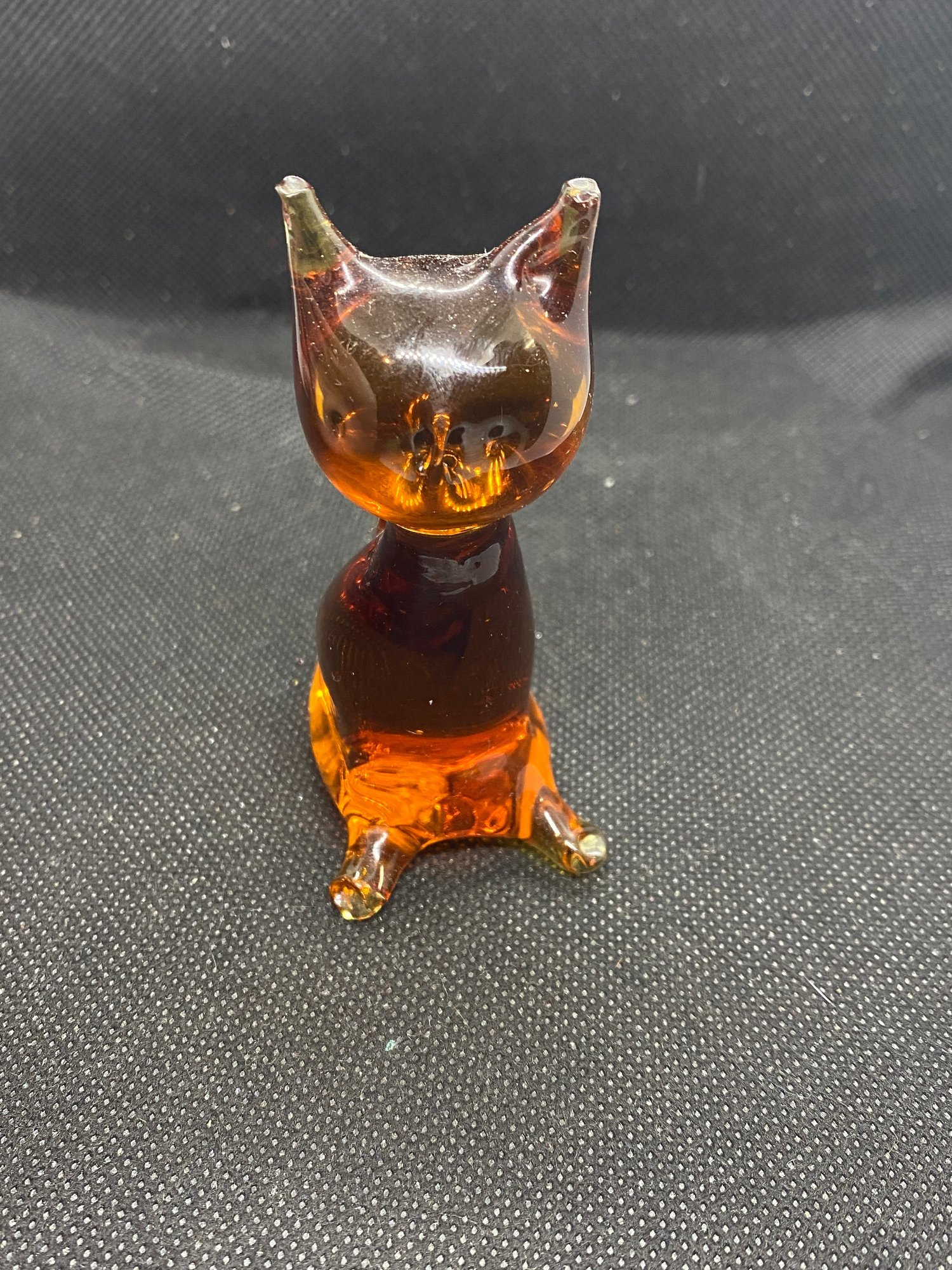 This figurine is in beautiful condition and doesn’t appear to have any flaws! It’s a gorgeous amber color and measures 3” tall.