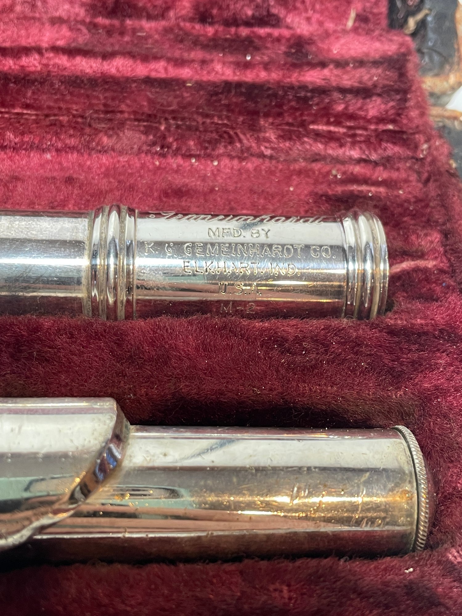 This is a vintage Gemeinhardt co flute with case. The flute looks to be in good condition. The case is pretty beat up as shown in the pictures. Made in the USA.