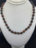 This beautiful necklace has no flaws and looks like it was never worn. The beads are most likely glass and are quality beads. The clasp is marked “.925” and the necklace measures 20.5” long.