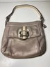 This purse is in beautiful condition overall! There is a few scuff marks on the back and unfortunately the lining on the back pocket is ripped(would be easy to sew for sure!). Otherwise is looks like new! The inside of the back is very very clean. It is an Isaac Mizrahi brand and measures 10.25” wide,10” long, and has a strap drop of 11.5”.