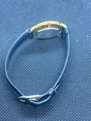This watch is untested and not working but most likely just needs a battery. It has some very minor scratches (mostly on the back) but there doesn’t appear to be any other flaws! It is a Bill Blass watch.