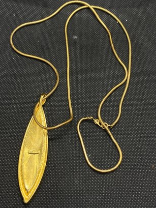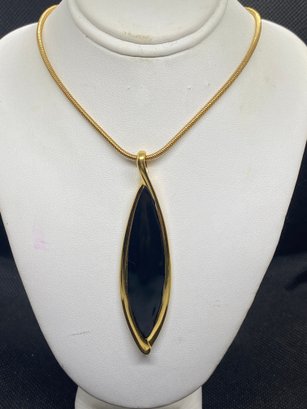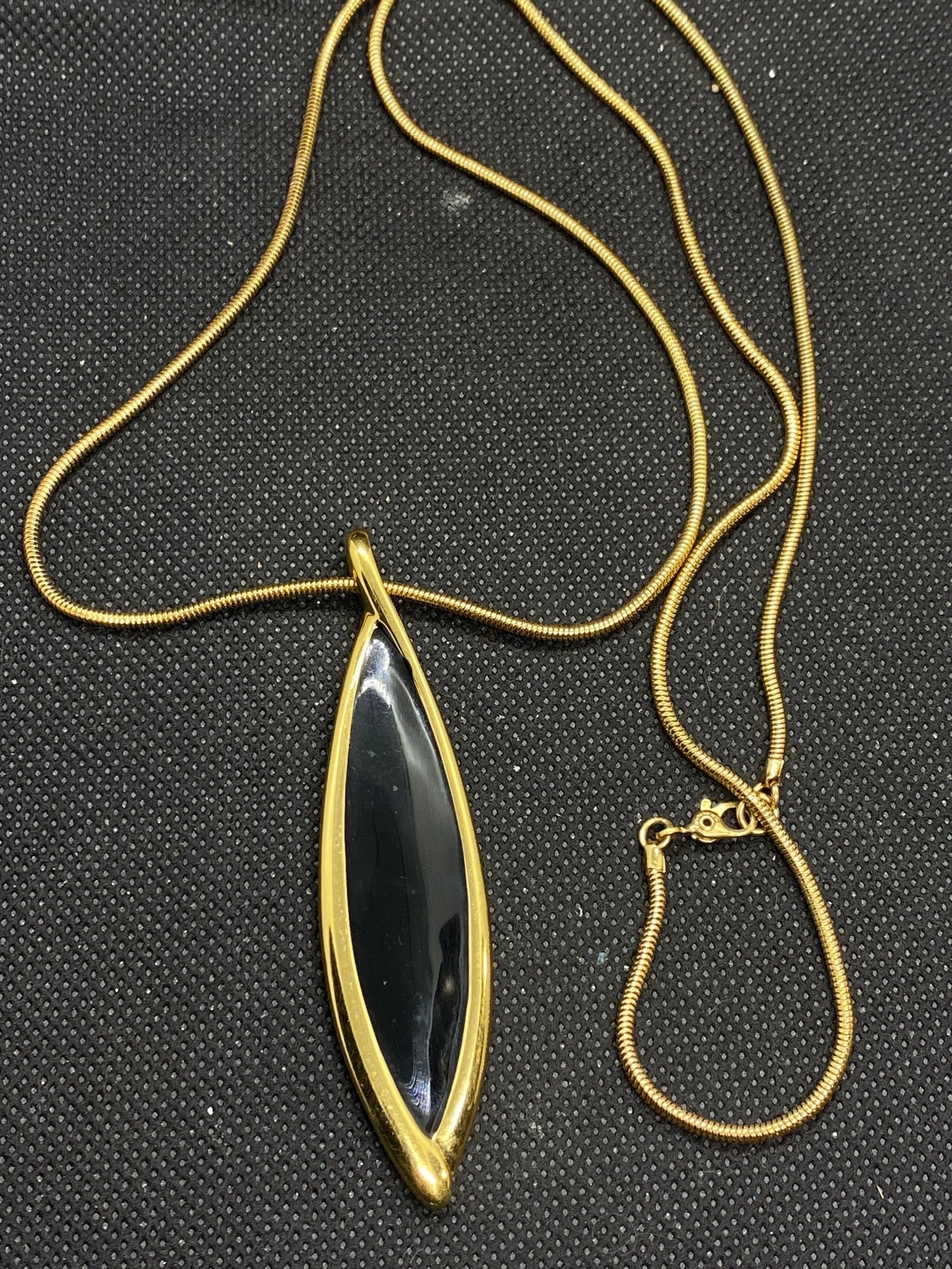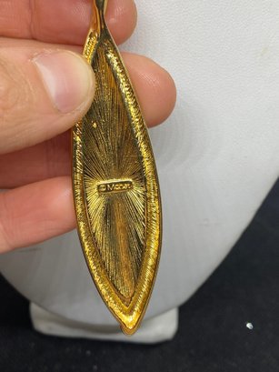 This beautiful necklace is nice and shiny and is a lovely quality piece! It is marked “ Monet” on the back and the chain measures 14” long and the pendant measures 3” long.